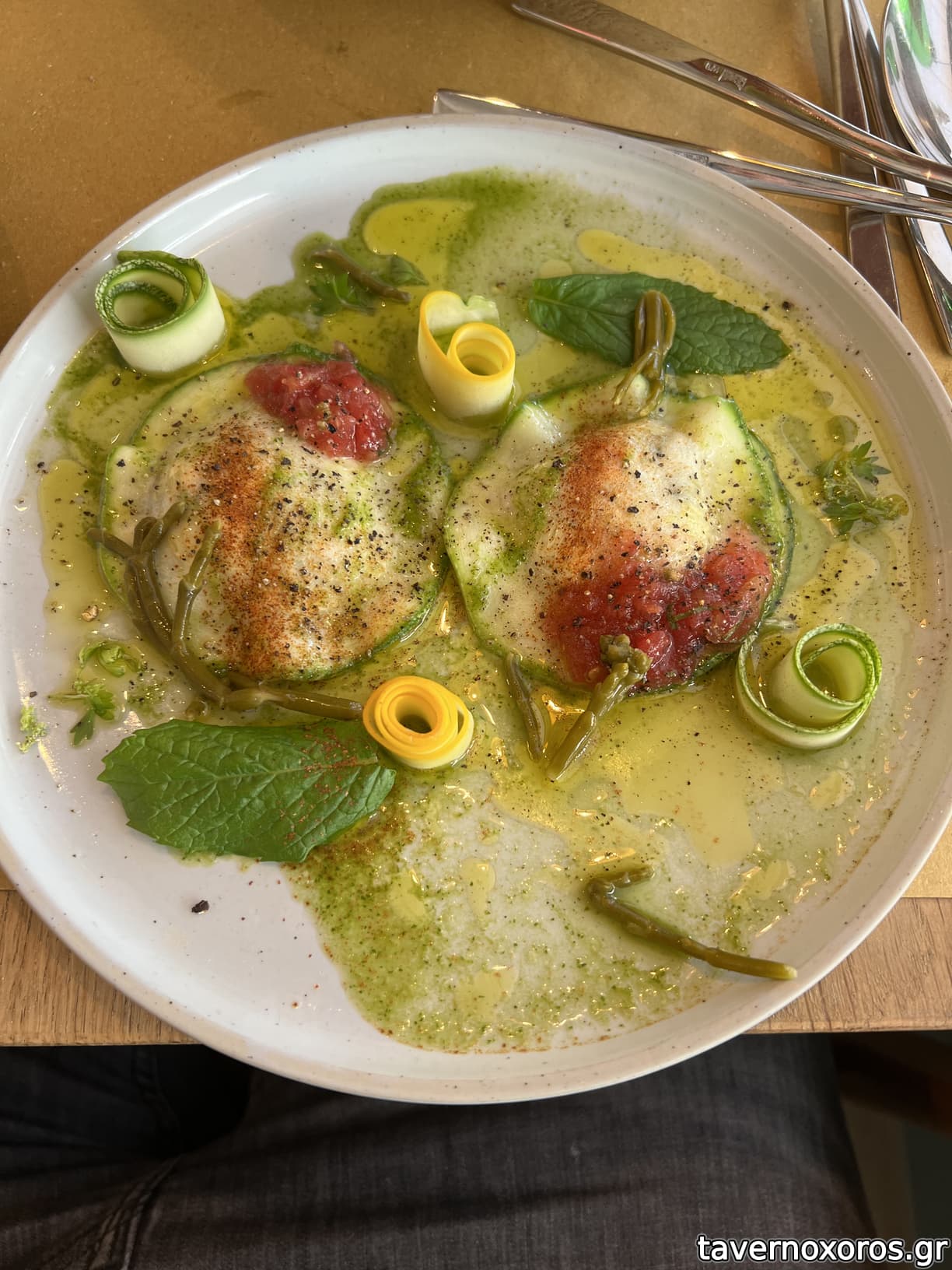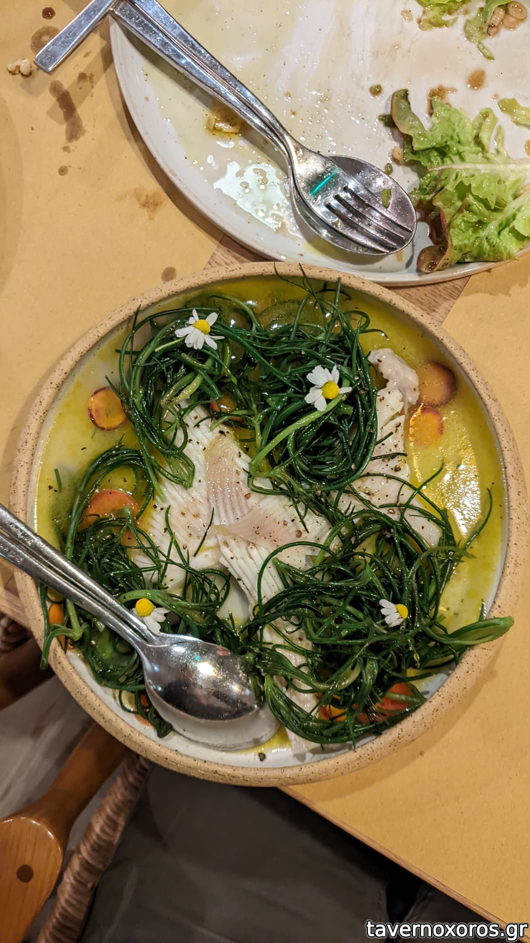- ένα ορεκτικό, κουτσομούρες σαβόρο: η κουτσομούρα πάμφρεσκια, ωστόσο προσωπικά μου φάνηκε πολύ έντονη η γεύση του σαβόρο. Το προτιμώ με σταφίδα, πιο καραμελωμένα κρεμμύδια και πιο γλυκό το ξύδι, εδώ ήταν κόκκινο το λάδι (είχε μπαχαρικά) και τα κρεμμύδια πολύ έντονα. Στην όψη θύμιζε μπουρδέτο. Ο συνδαιτημόνας το ευχαριστήθηκε.