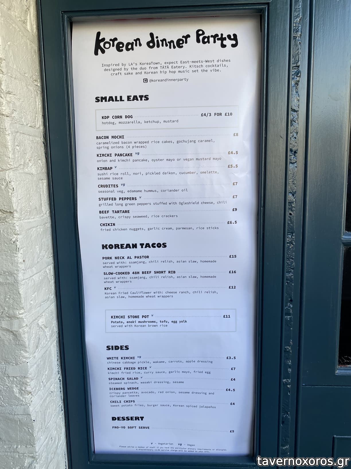 New Entry στο κεντρικό Λονδίνο. το κονσεπτ είναι Κορεάτικο φαγητό με κοκτειλ . Το φαγητό δεν ήταν κάτι φοβερό, αλλά από την άλλη ούτε άσχημο. ( εξαρτάται τι εμπειρίες έχει ο καθένας από κορεάτικη κουζίνα).
