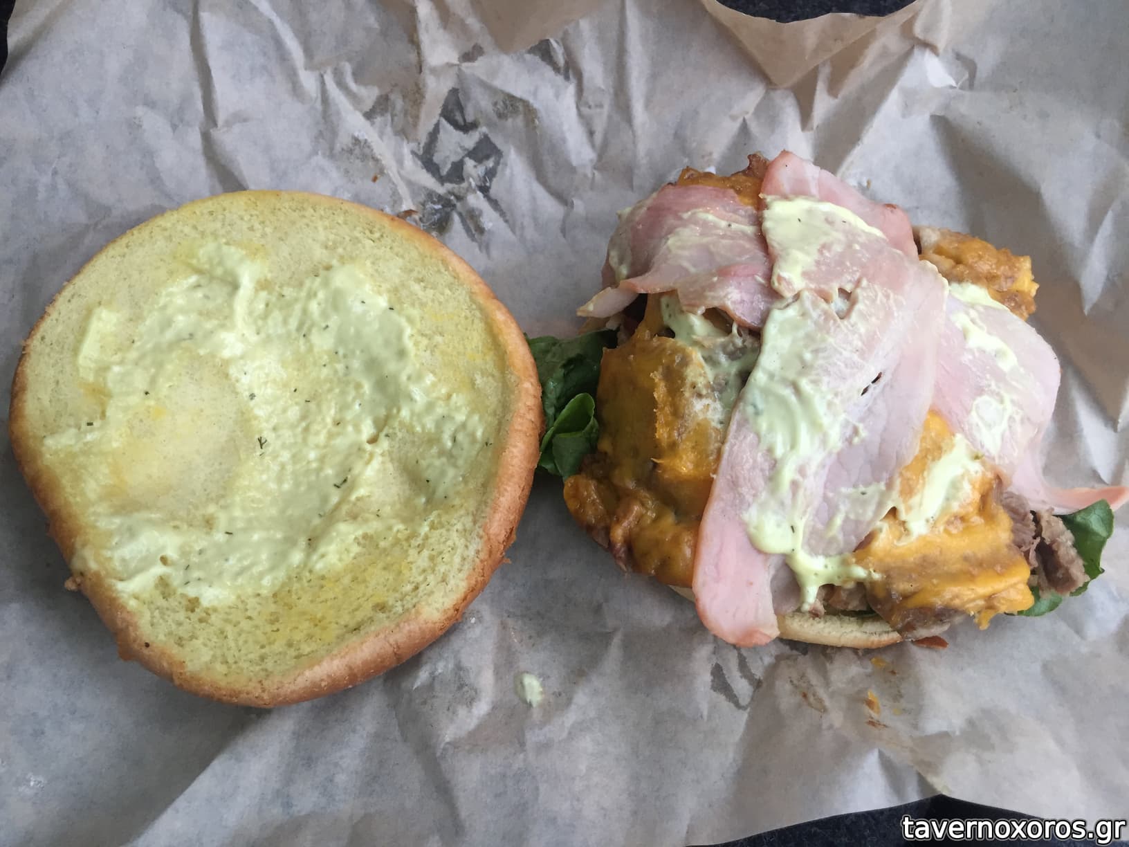 XXL burger με γουρουνοπούλα (ωραίο)