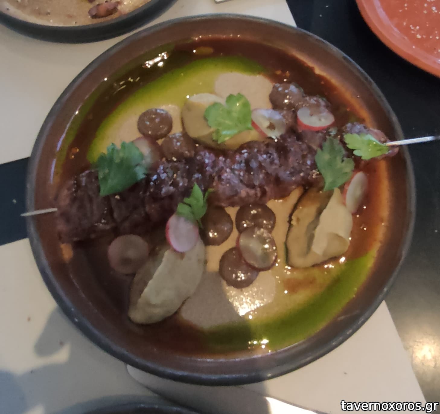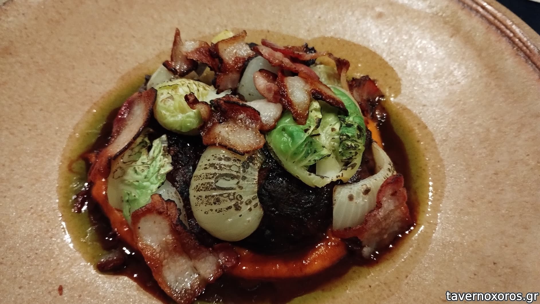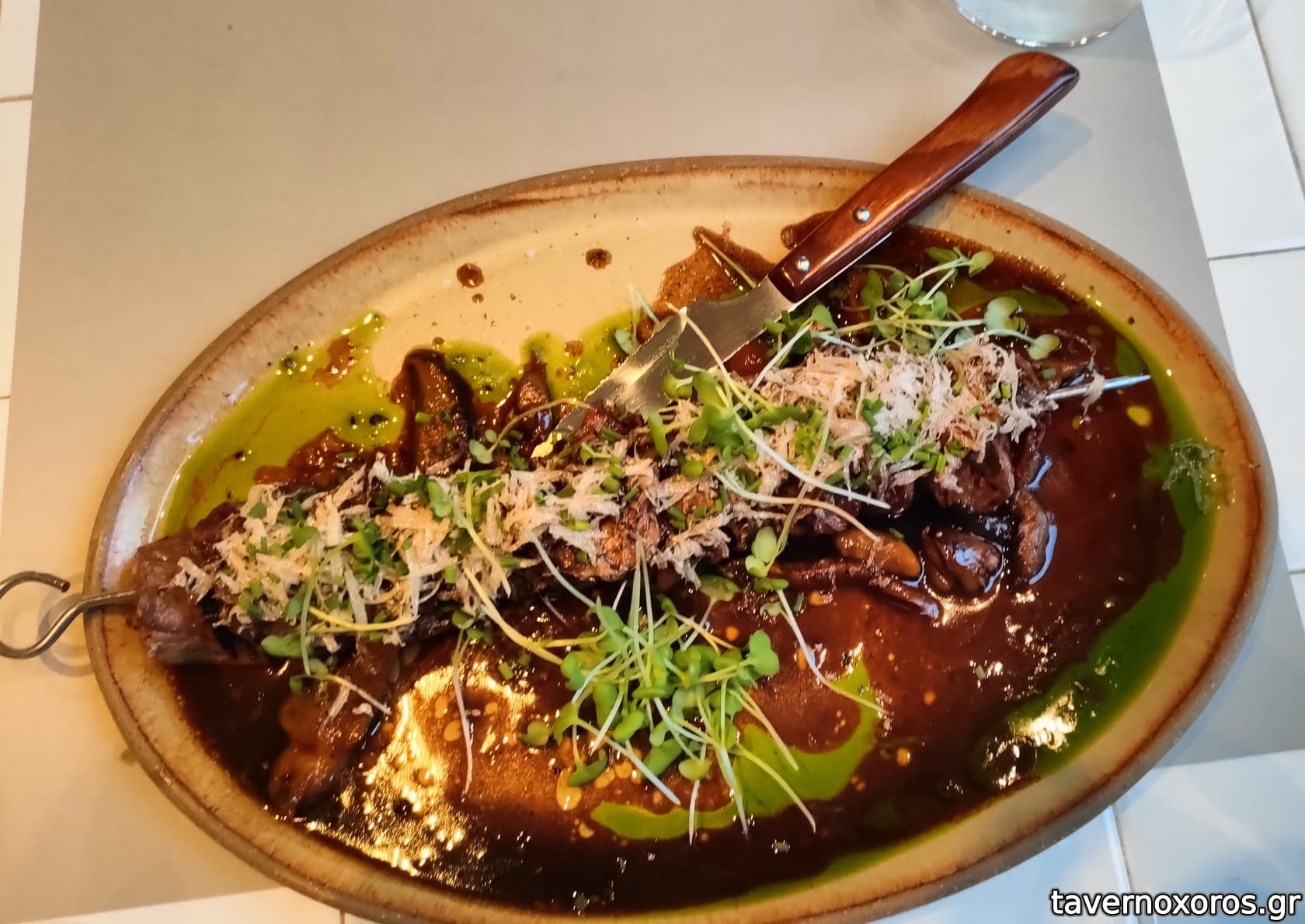 Μοσχαρίσιο σουβλάκι με σάλτσα μανιταριών (28€, φοβερό)