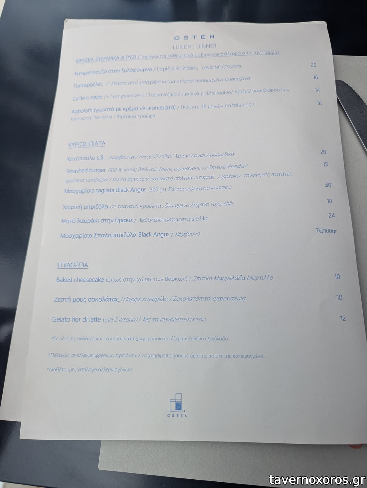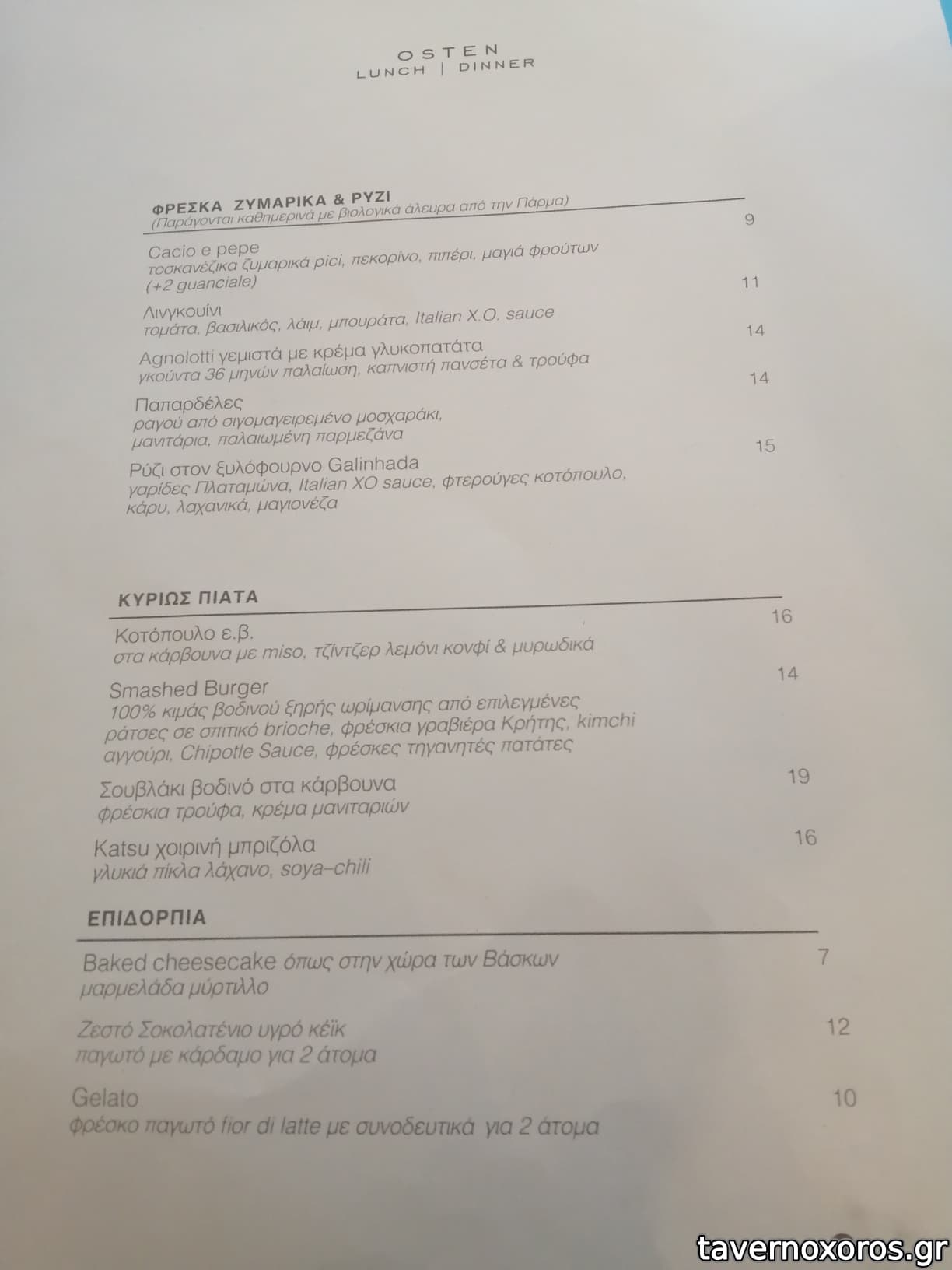 Συνολικά: Επιβεβαίωση πως οι γεύσεις του osten είναι απ' αυτές που ταιριάζουν πολύ στα γούστα μου, το περιβάλλον όσο πρέπει σοβαρό μίνιμαλ και όχι απλώς κενός χώρος (και νόημα). Απ' τα αγαπημένα της πόλης για φαγητό (καφές to gο αρκετά καλός, επίσης). Το service ευγενικό και σβέλτο, οι τιμές προς υψηλές.