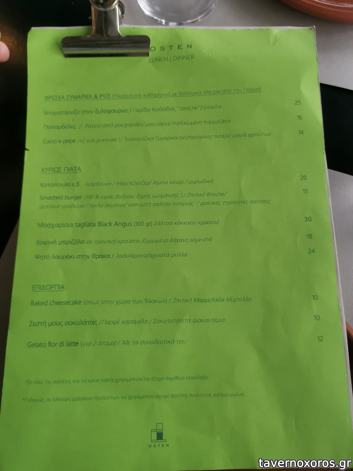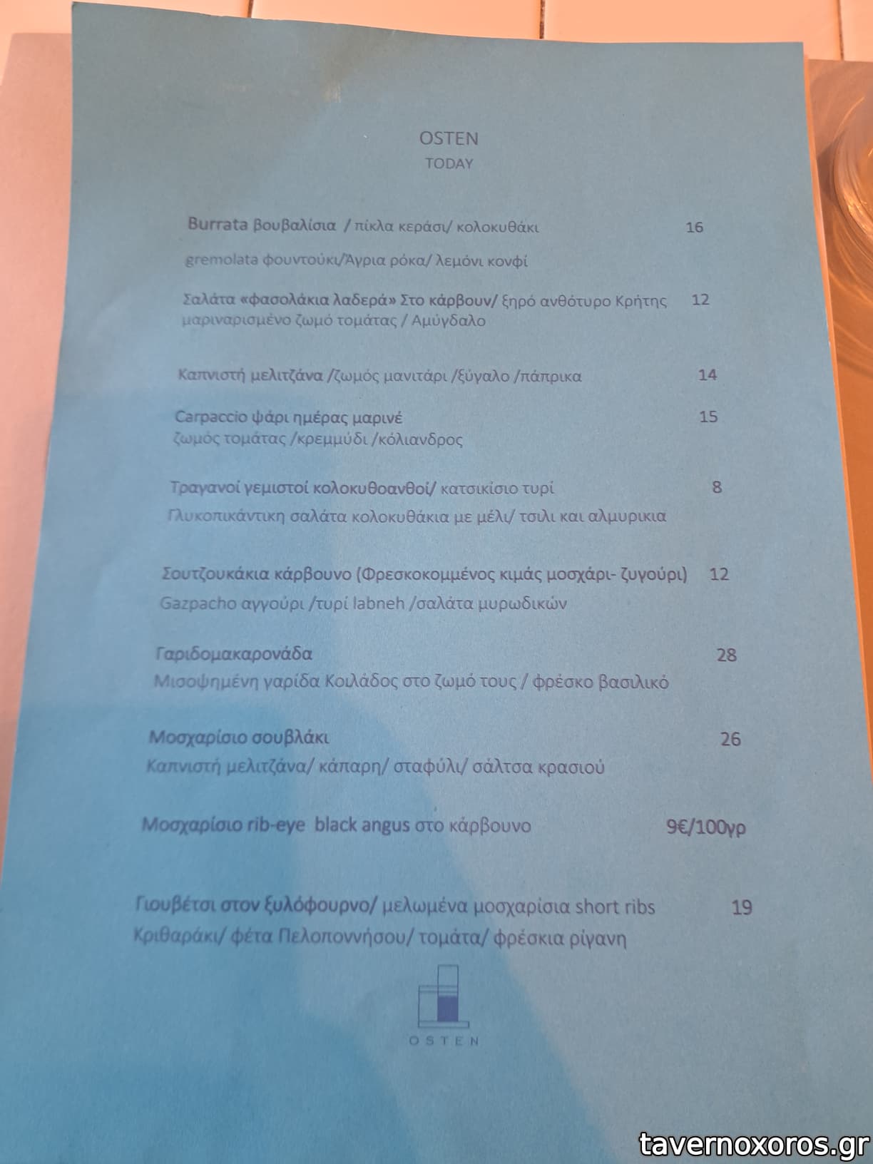 "Παρπαδέλες / ραγού από μοσχαράκι / μανιτάρια" (μια χαρά, αλλά 16€ πολλά δεν είναι;)