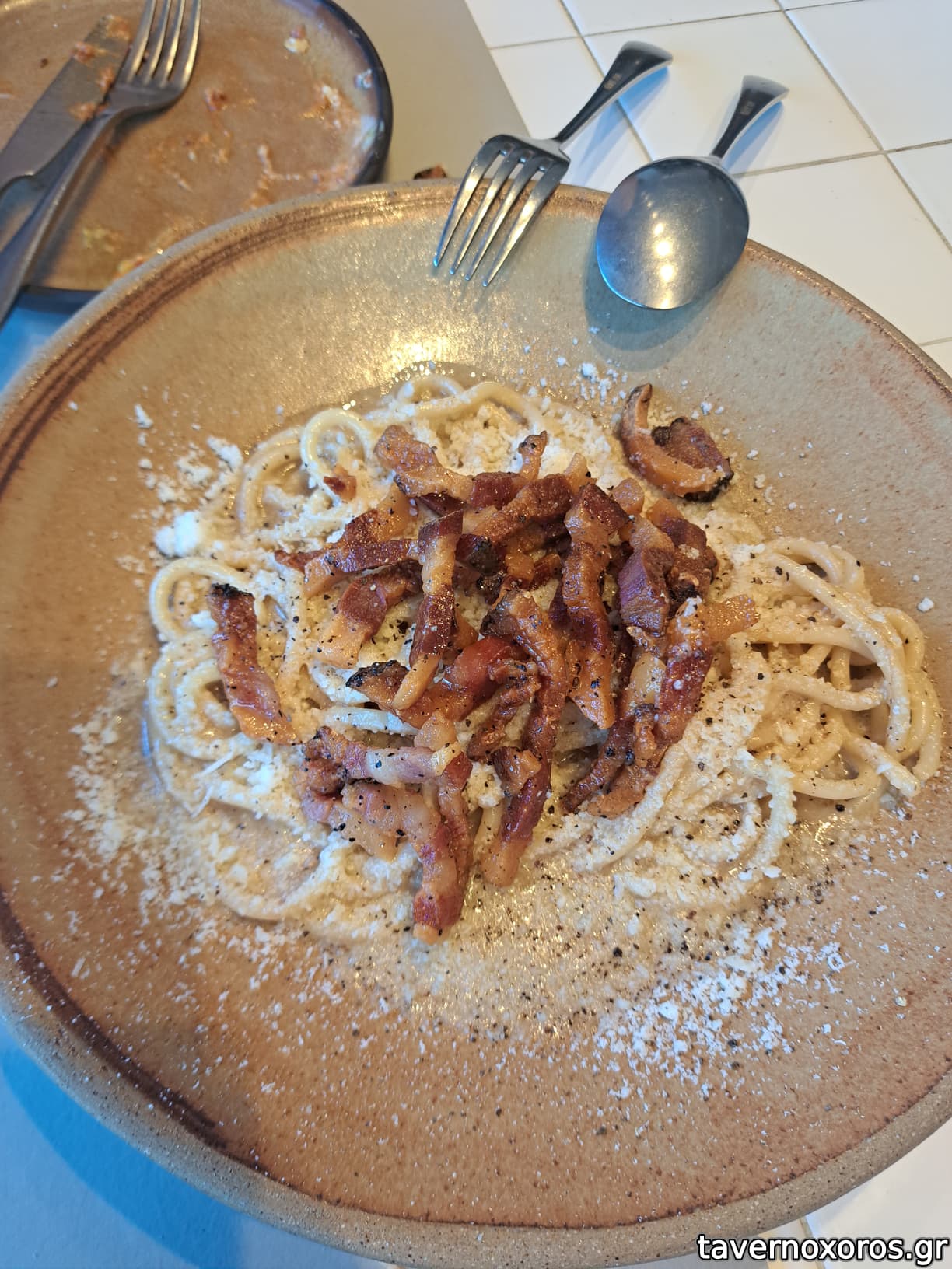 Caccio e pepe με guanciale (πολύ καλό, αλλά το guanciale βαρύ. Μόνο για δυνατούς)