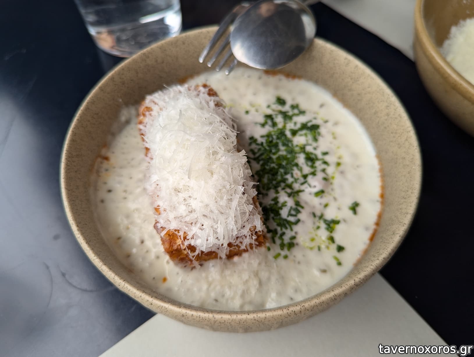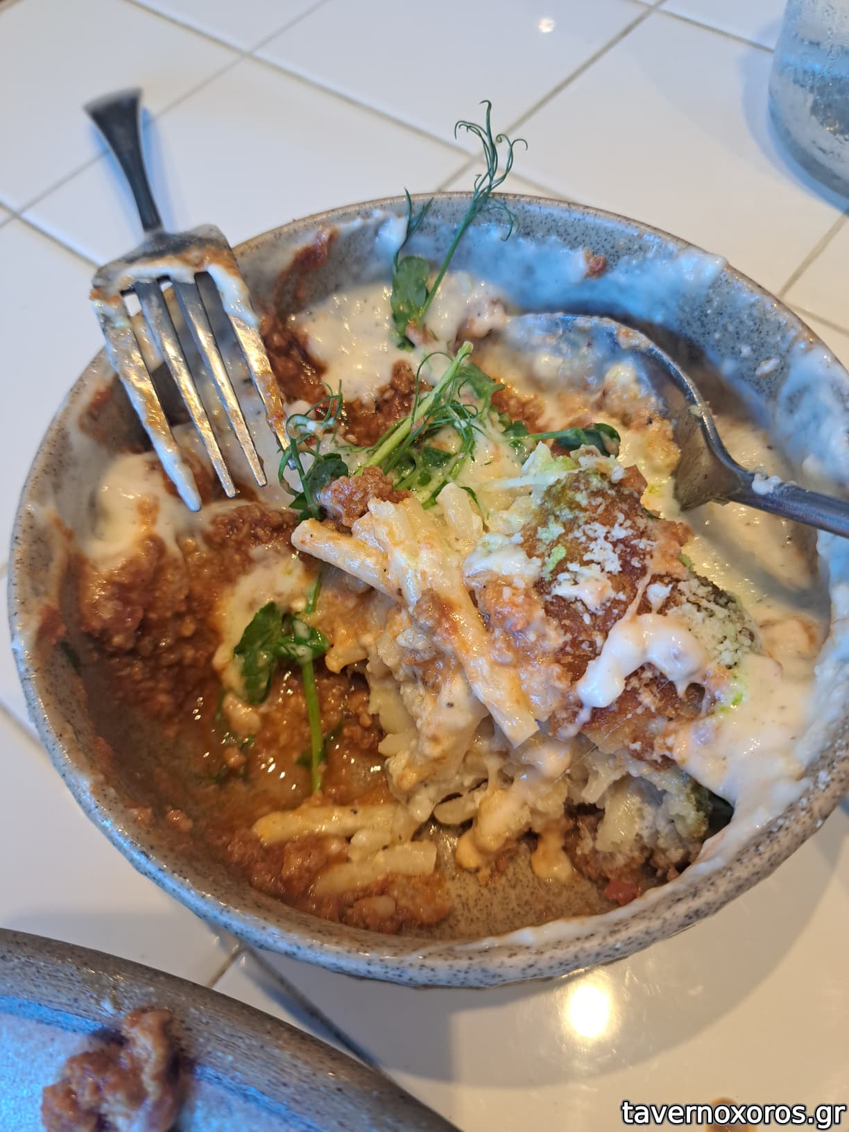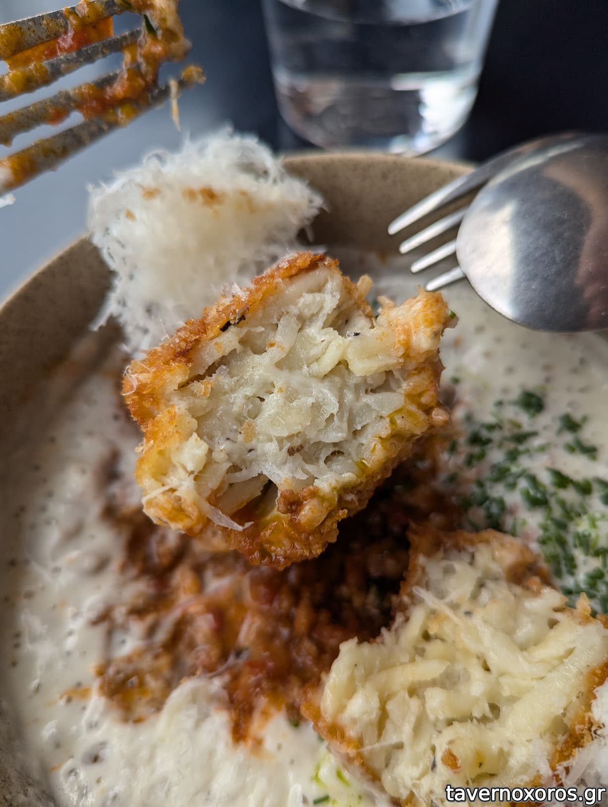 "Παστίτσιο croquette / iberico bolognese / αφρός παρμεζάνας / άρωμα τρούφας" (αδιάφορο)