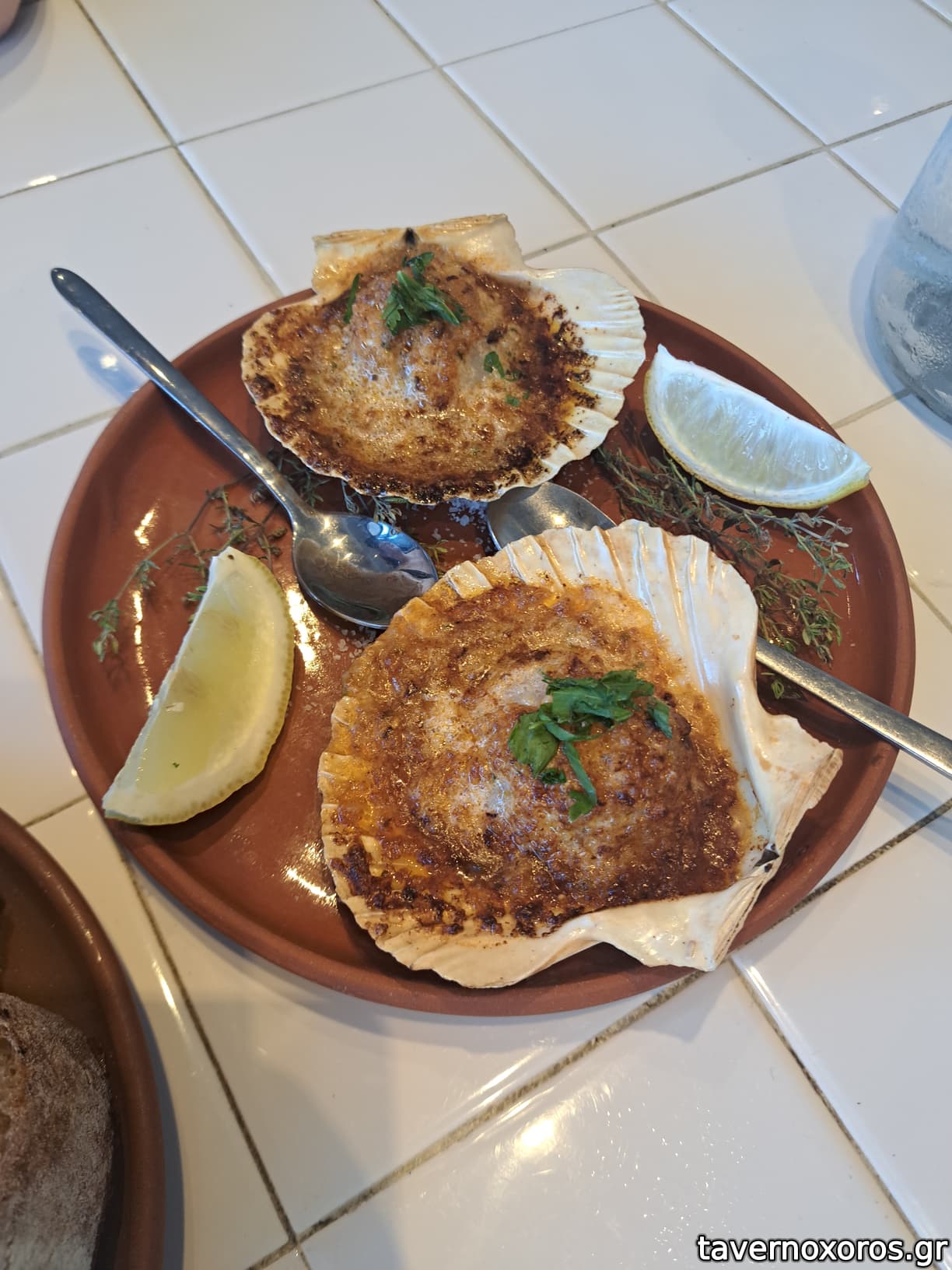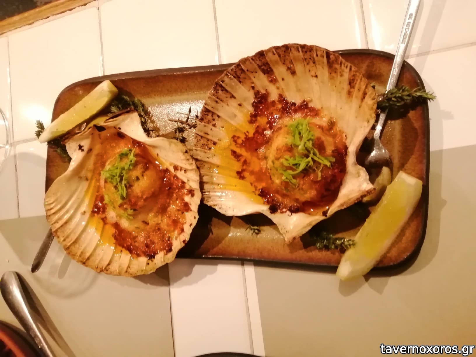 Χτένια στον ξυλόφουρνο/βούτυρο τσίλι/σέλινο/λεμόνι (πολύ καλά)