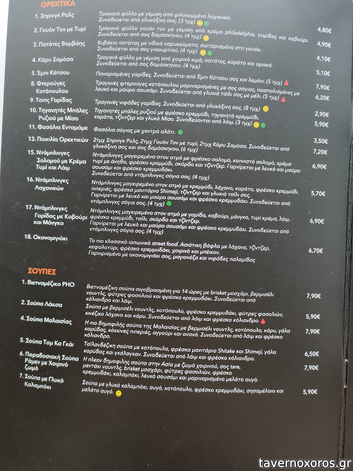 Πολύ εκτενές μενού, όσα παραγγέλθηκαν όπως πάπια Πεκίνου , noodles λαχανικών, spring rolls , πολύ καλά.