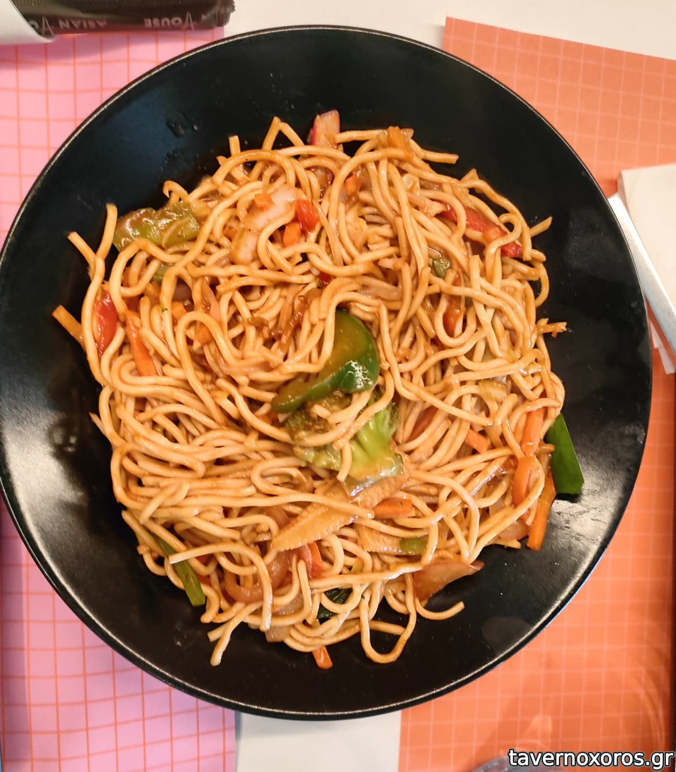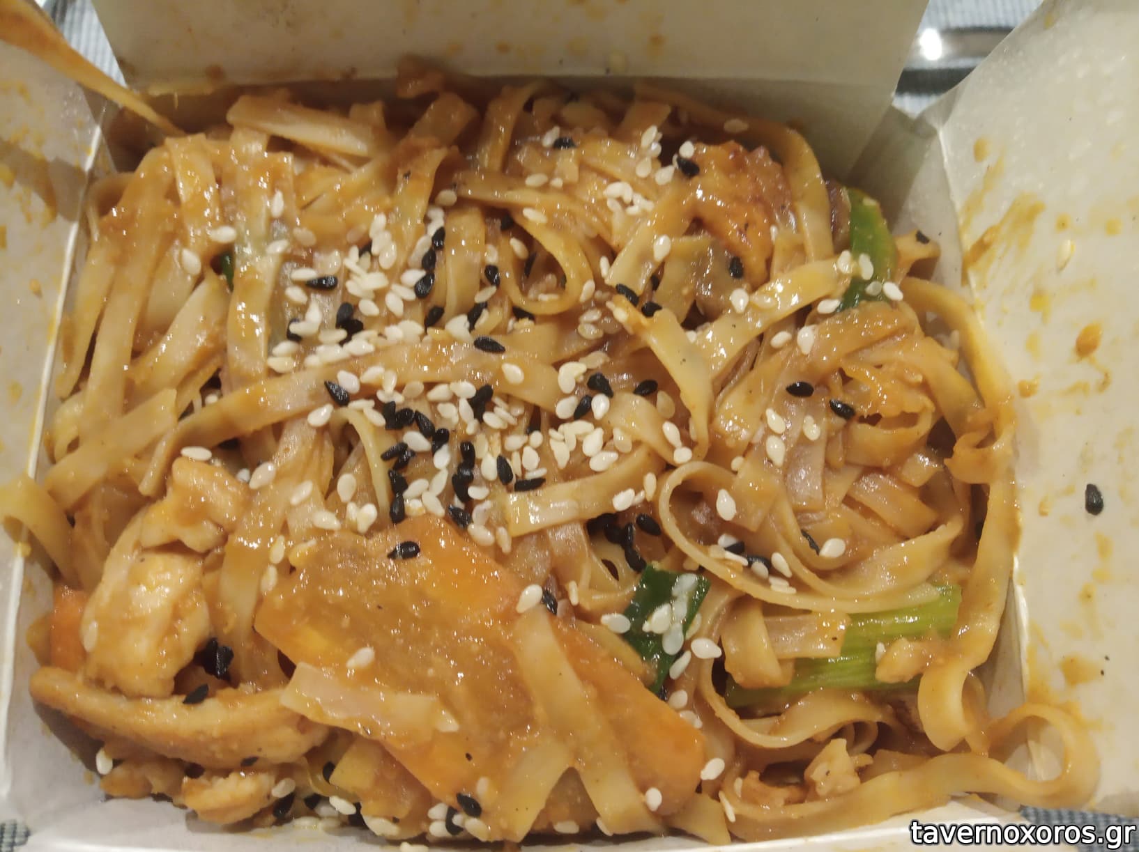 Dragon noodles: φαρδιά νουντλς αβγού (πολύ οκ και τεράστια μερίδα)