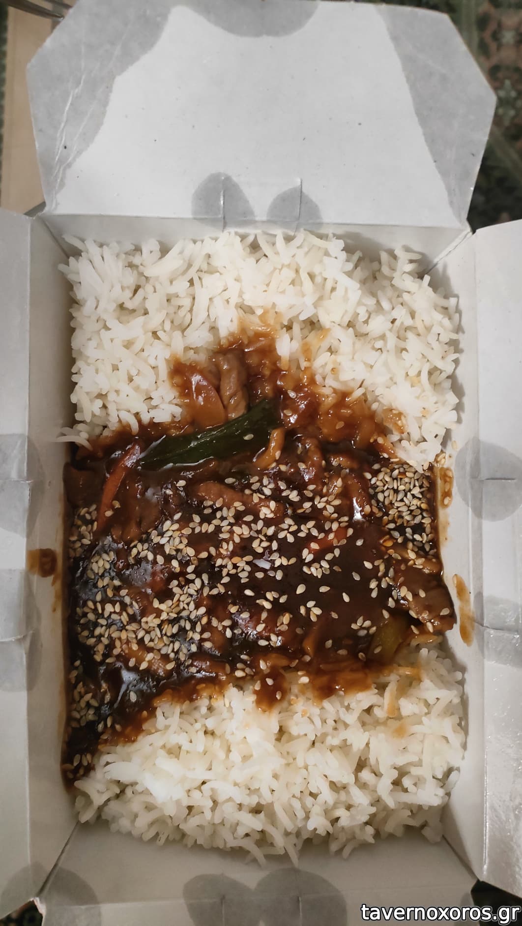 Το γλυκόξινο κοτόπουλο με ρύζι που δοκίμασα ήταν καλούτσικο, θα το ξαναπροτιμήσω στα κοντά μιας και το μενού του, πέρα του ότι είναι πραγματικά τεράστιο,