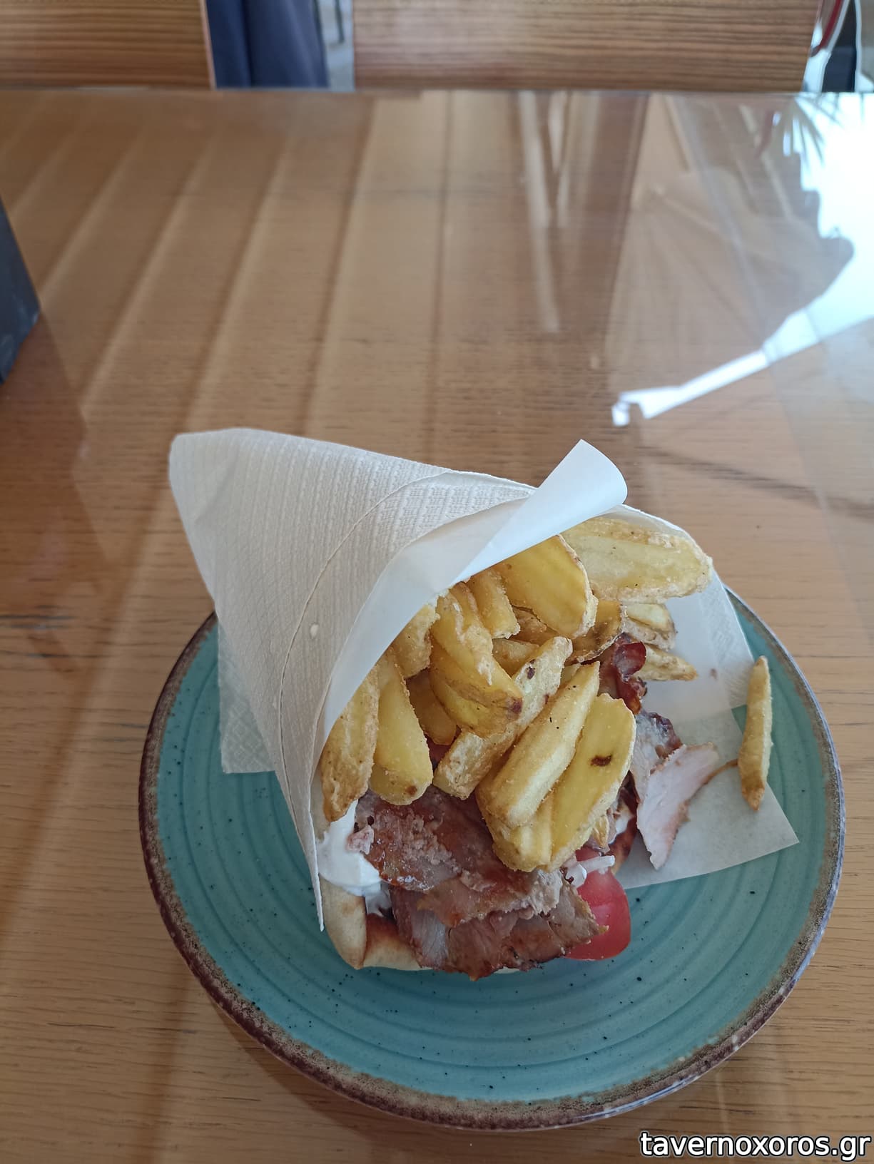 Γύρος γευστικός, καρυκευμένος τόσο όσο, ένα τσικ αλμυρός. Απ'όλα σε πίτα στα 5,20€ (δεν έχω καθόλου εικόνα τι θεωρείται νορμάλ τιμή στο Ηράκλειο, αλλά το μέγεθος, αν και σχετικά μεγάλο, δεν το δικαιολογεί).