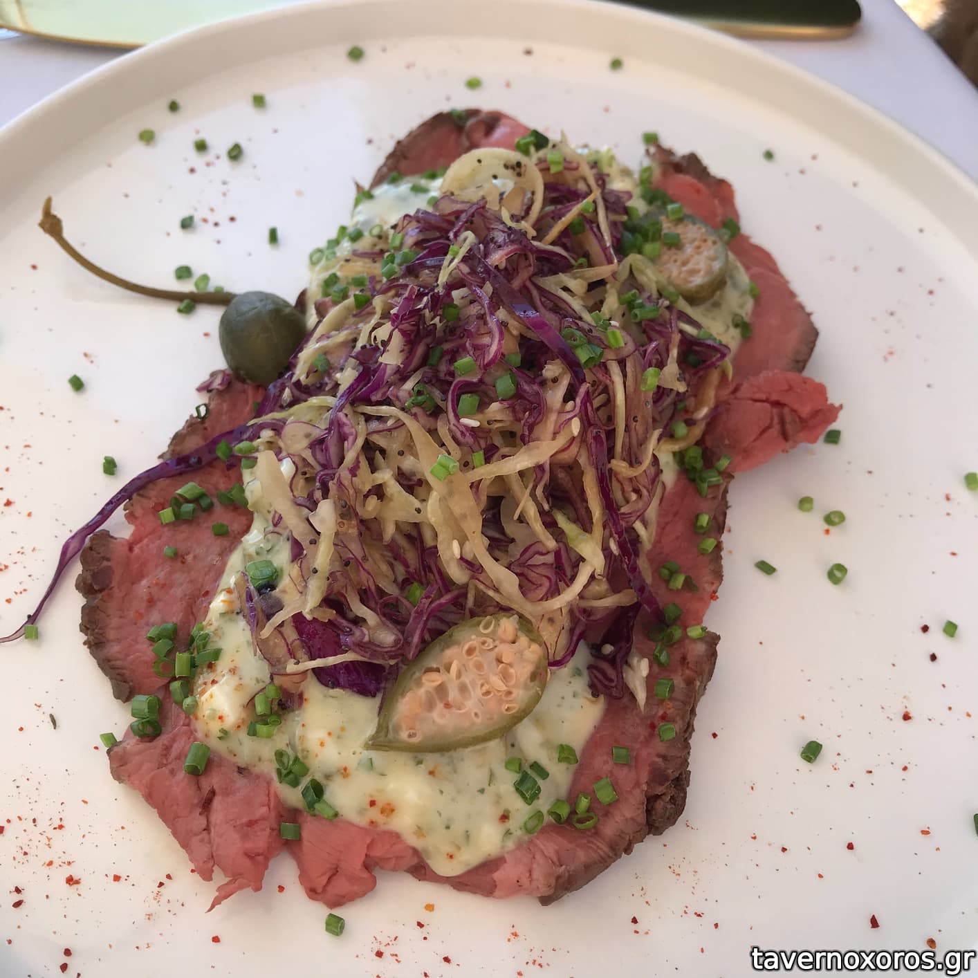 Πήραμε 1 σαλάτα σίζαρς με κοτόπουλο πανέ και μία ντοματοσαλάτα με ντομάτες heritage, βασιλικό, buratta και pistou (το τοπικό πέστο, πιο ελαφρύ). Και τα δύο καλά, ξεχώριζε η ντοματοσαλάτα για τα αρώματα και τη φρεσκάδα της. Για κυρίως πήραμε ψάρι φιλέτο (μπακαλιάρος) με κρούστα μυρωδικών και αφρό/πουρέ σελινόριζας, πολύ ισορροπημένο, πανάλαφρο πιάτο, έχω μια ένσταση στο μέγεθος του ψαριού (χωρίς να σημαίνει ότι δεν χόρτασα) και ροστ μπιφ κρύο με ταρτάρ (καταπληκτική η ταρτάρ!!) και λαχανοσαλάτα. Και τα 2 πολύ ωραια και ελαφριά. Στο τέλος αντί για γλυκό προτιμήσαμε καφέ με συνοδευτικά μικρά γλυκάκια (cafe gourmand) που ηρθε με μικρή μηλόταρτα, μακαρόν λεμόνι, ζελέ κυδώνι, σοκολατάκι μαύρο, σουφλεδάκι σοκολάτας και cookie. Κρασί ροζέ 50 cl Provence AOC αξιοπρεπέστατο και Badoit ανθρακούχο. Το σύνολο 81 ευρώ.