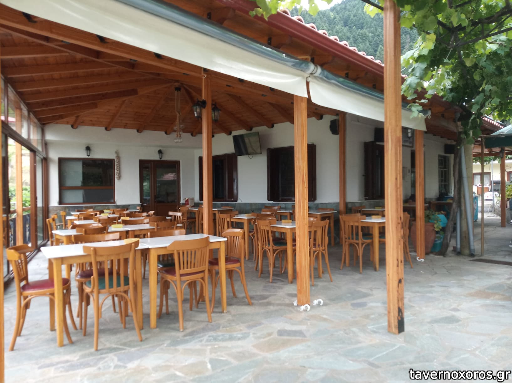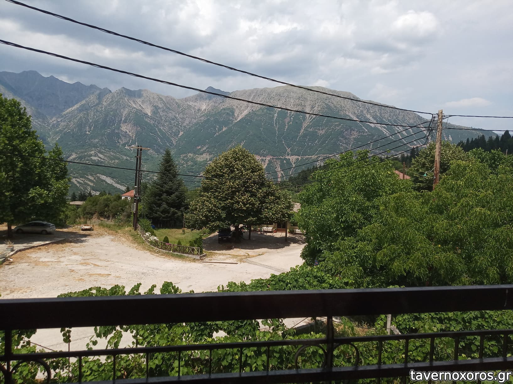Σε κεντρικό σημείο του χωριού με μεγάλη θέα στα βουνά τριγύρω, και μεγάλο χώρο έξω.
