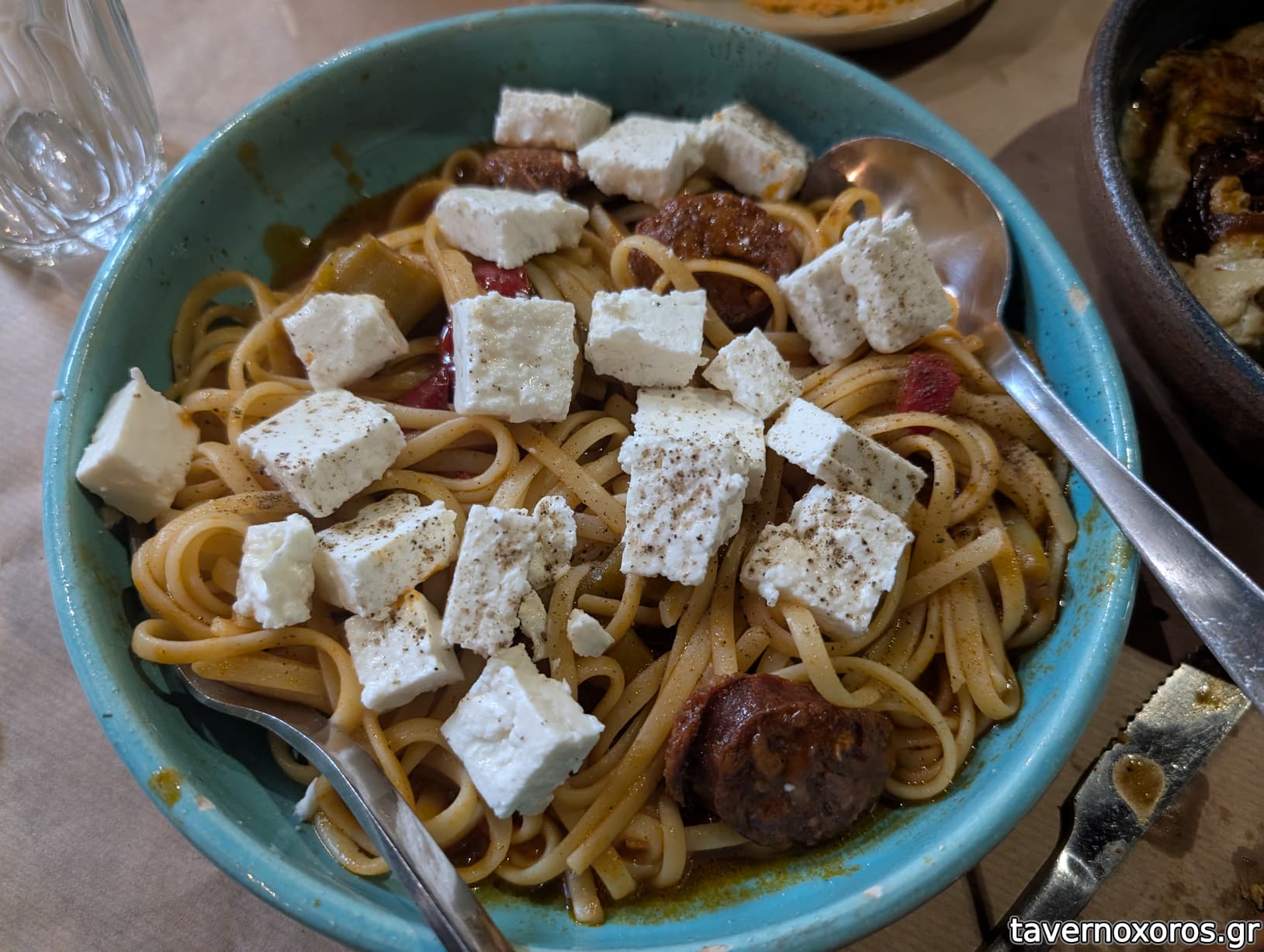 Λινγκουίνι με σπετζοφάι και φέτα (καλό, σωστά βρασμένα τα ζυμαρικά)