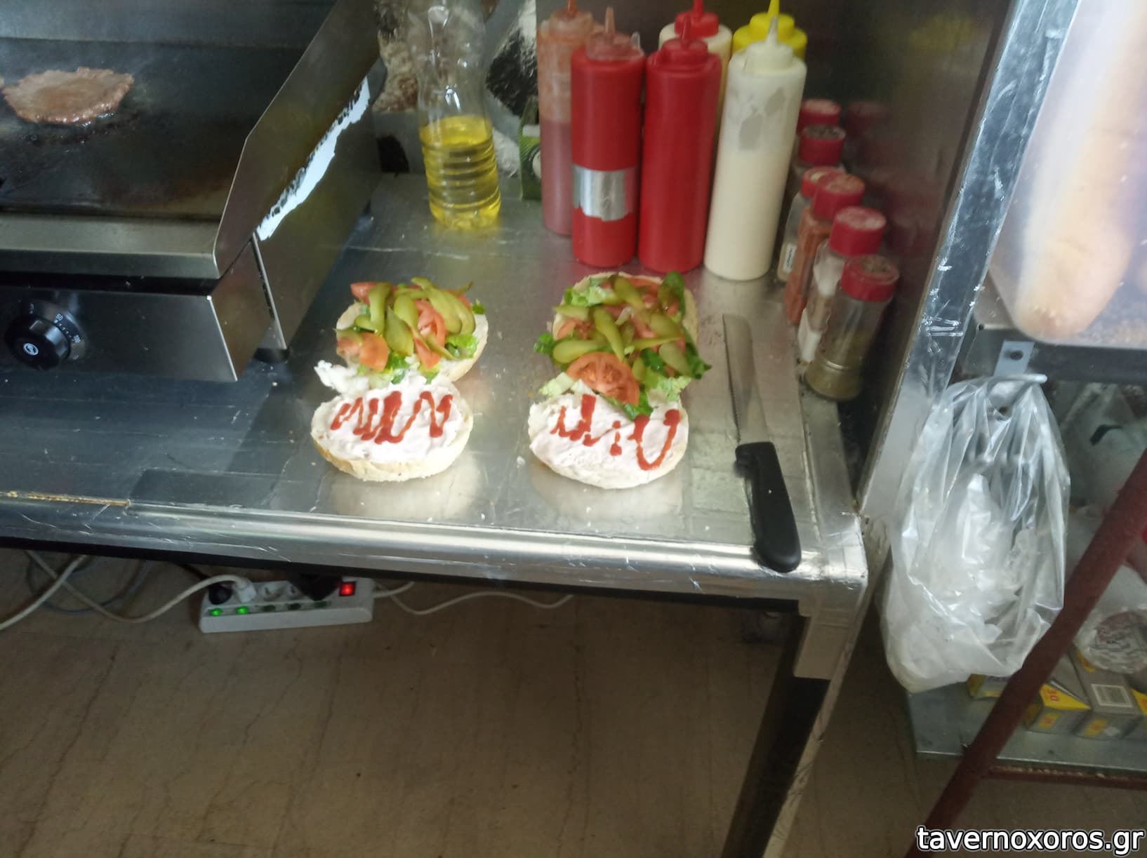 Κι εμένα μού άρεσε το burger, το δοκίμασα διεξοδικά μια μέρα, με έναν φίλο. Πολλά λαχανικά και ίσως κάποια μπαχάρια στον κιμά. Το έψησε μπροστά μου.