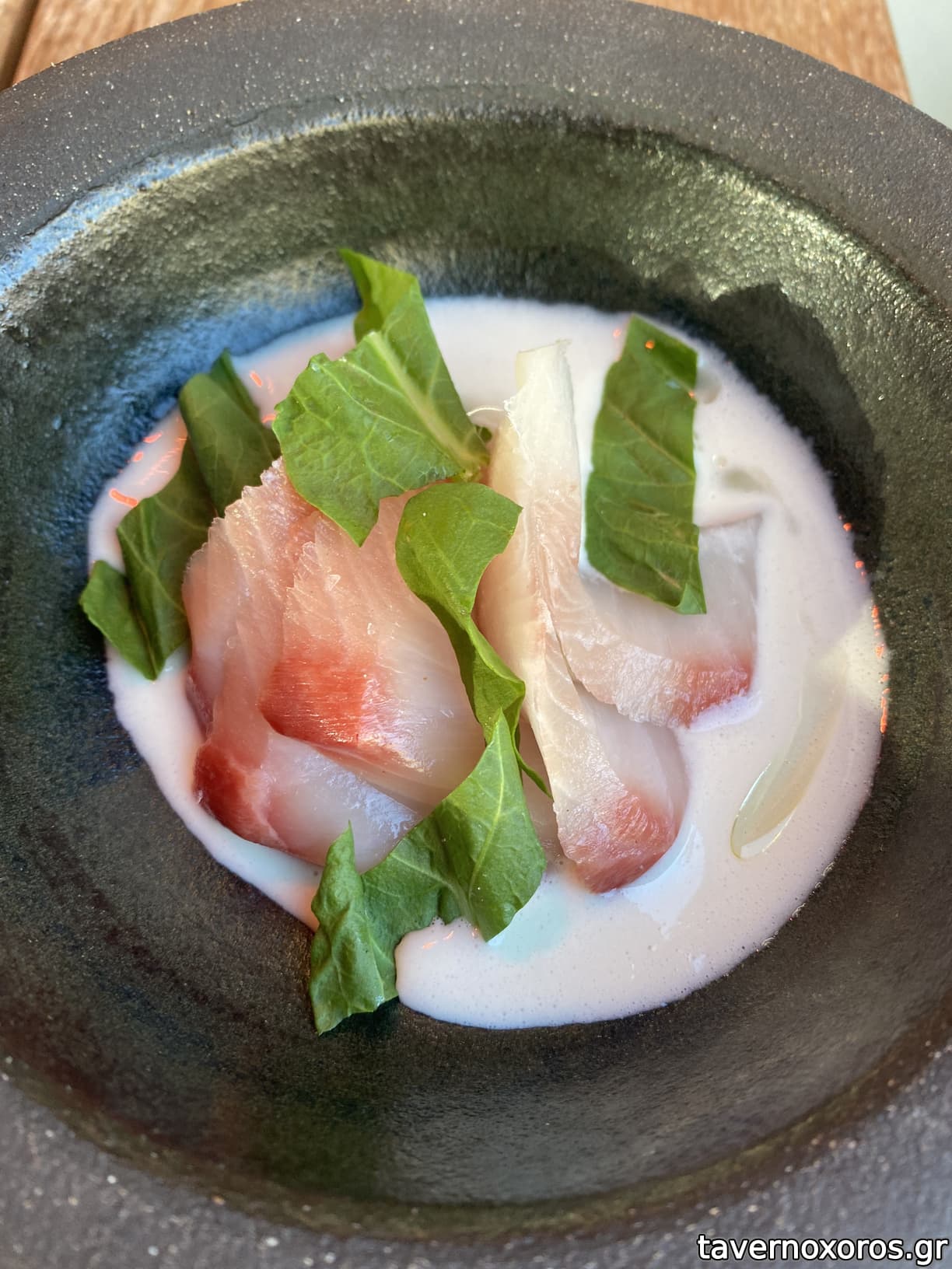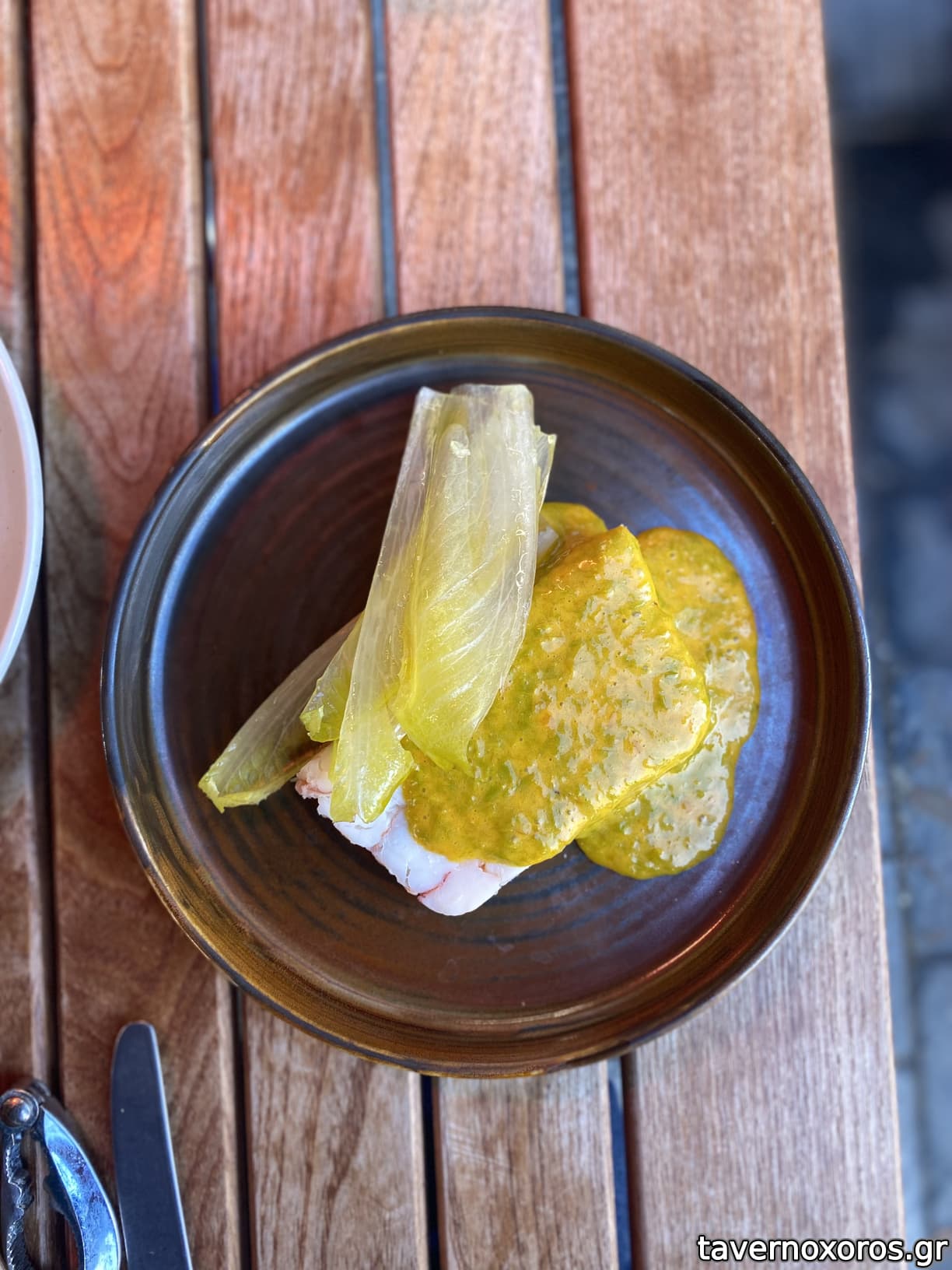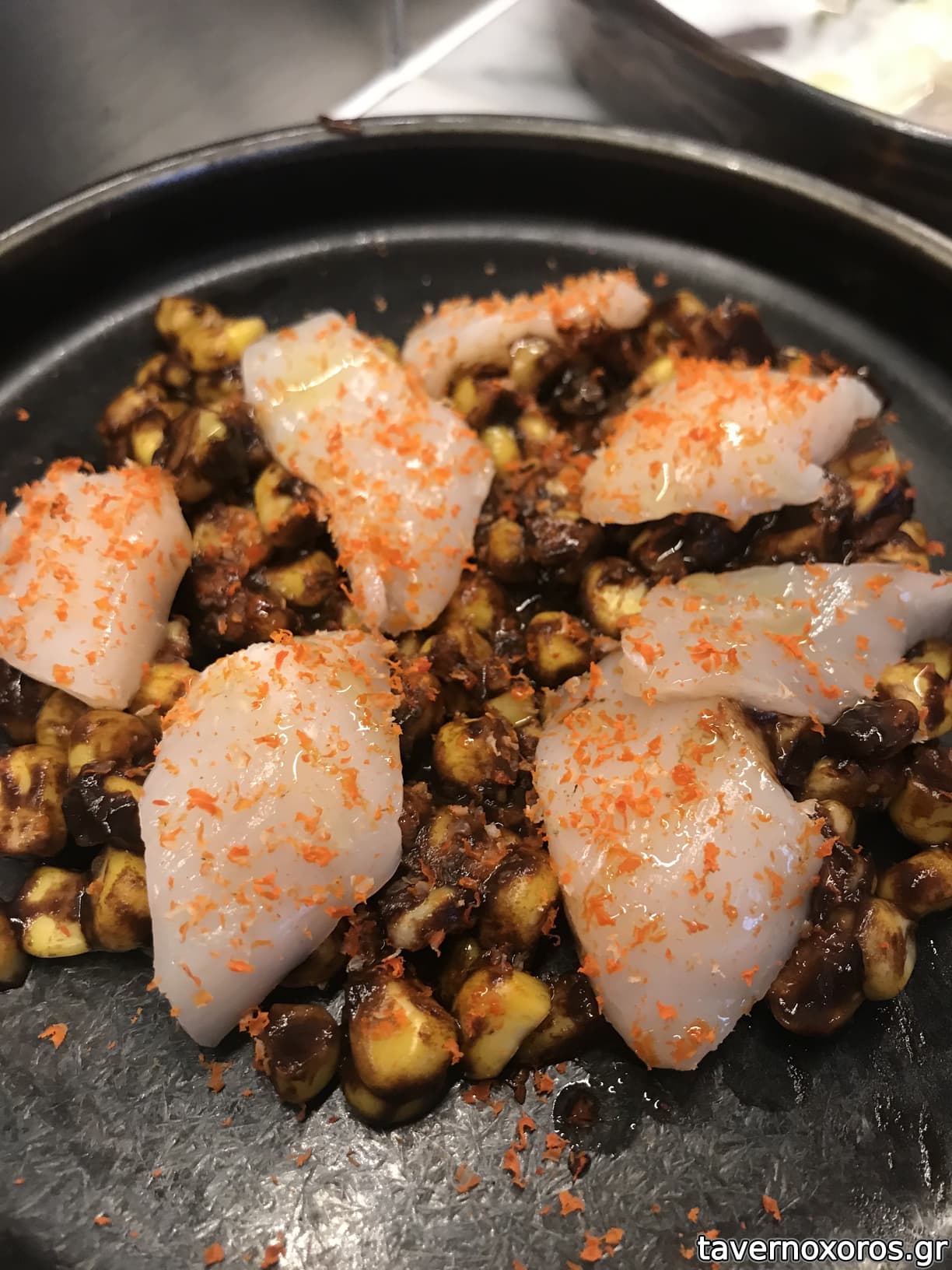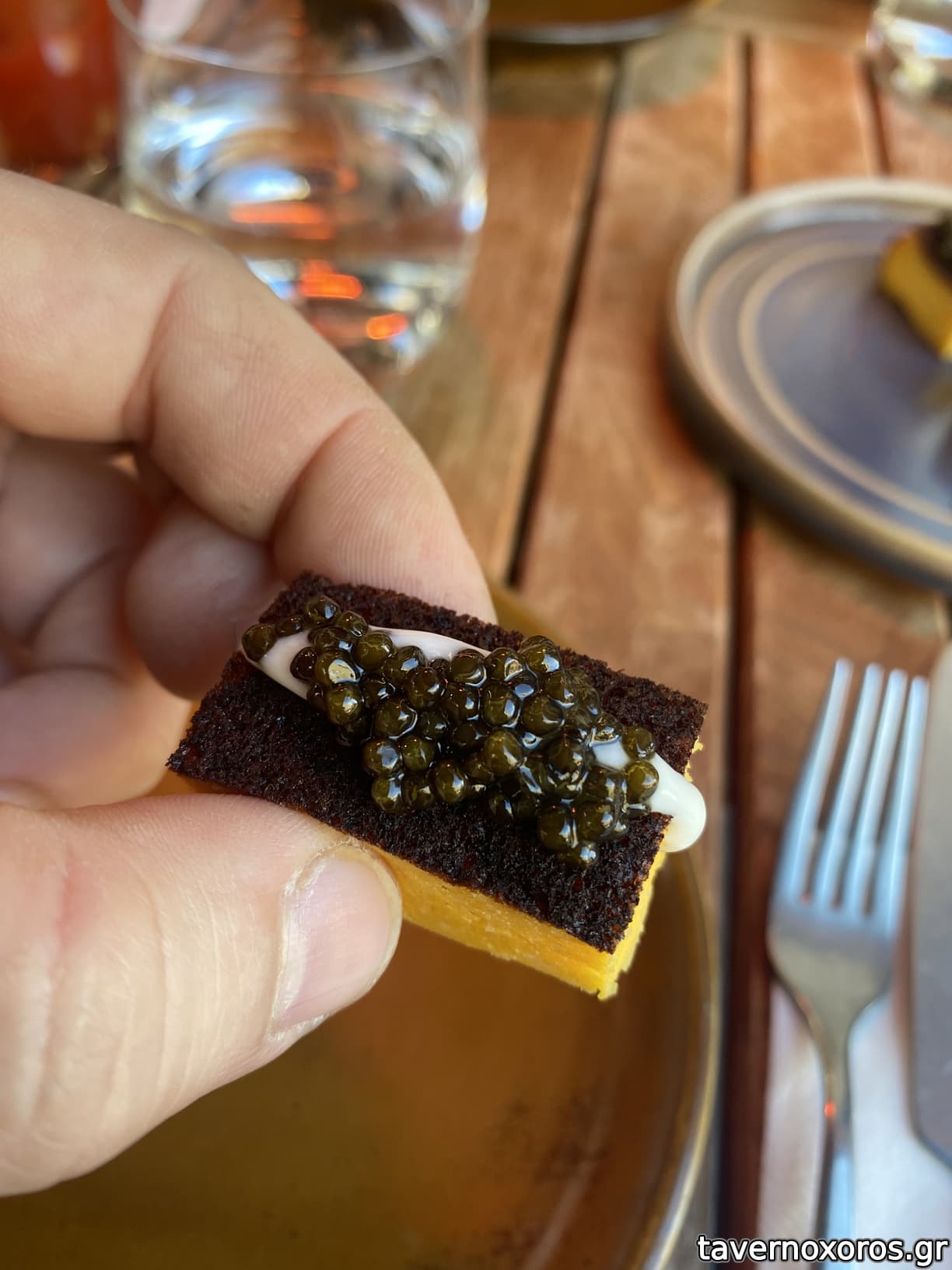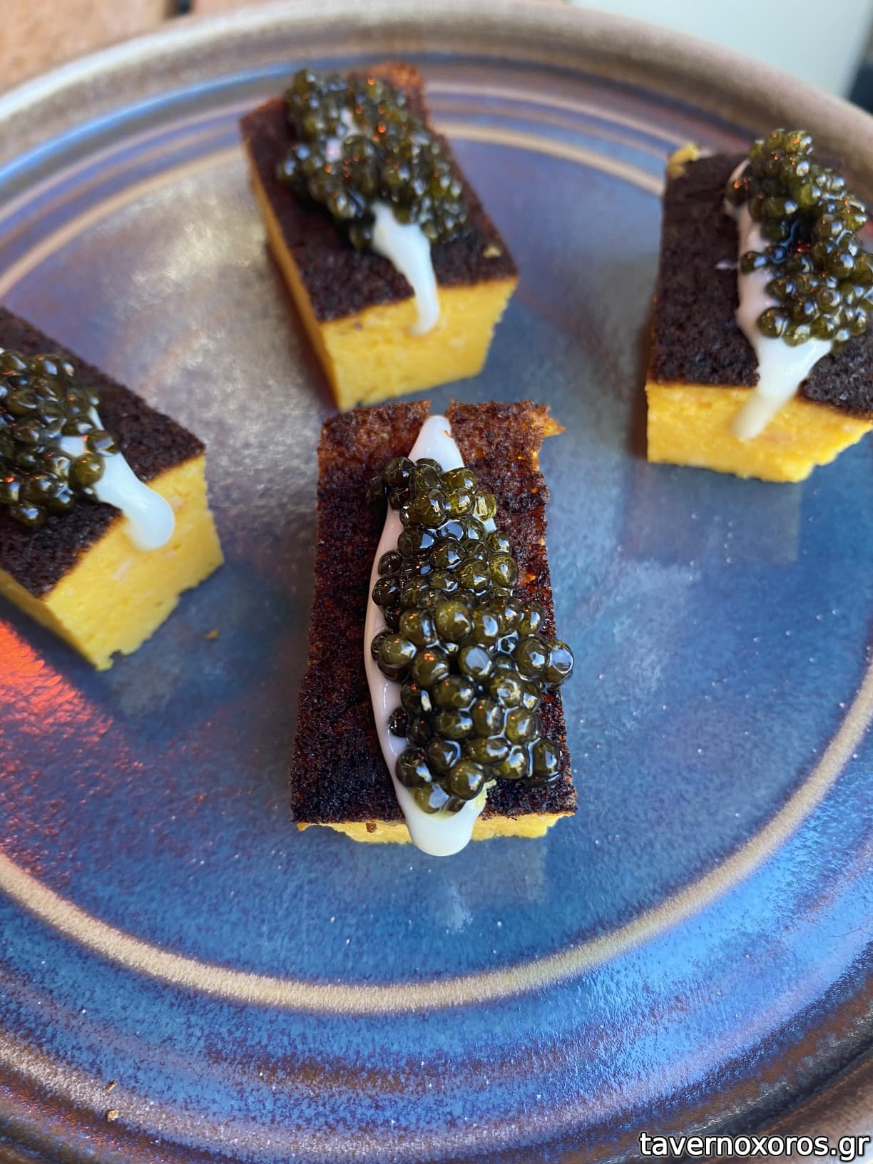 Caviar, shrimp tamagoyaki, almond cream (καλό)