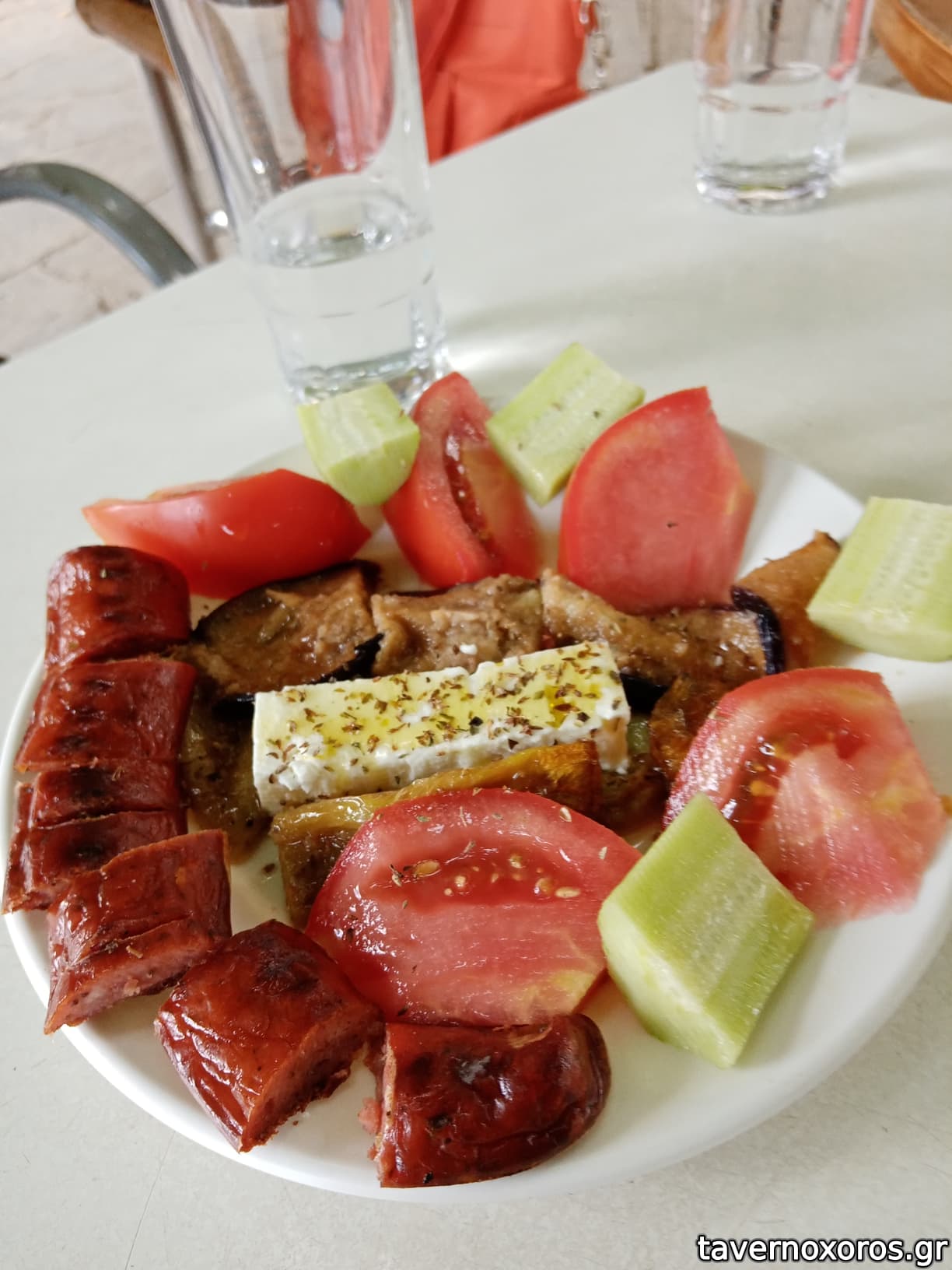 Μεζές (λουκάνικο, φέτα, μελιτζάνα, ντομάτα, αγγούρι)