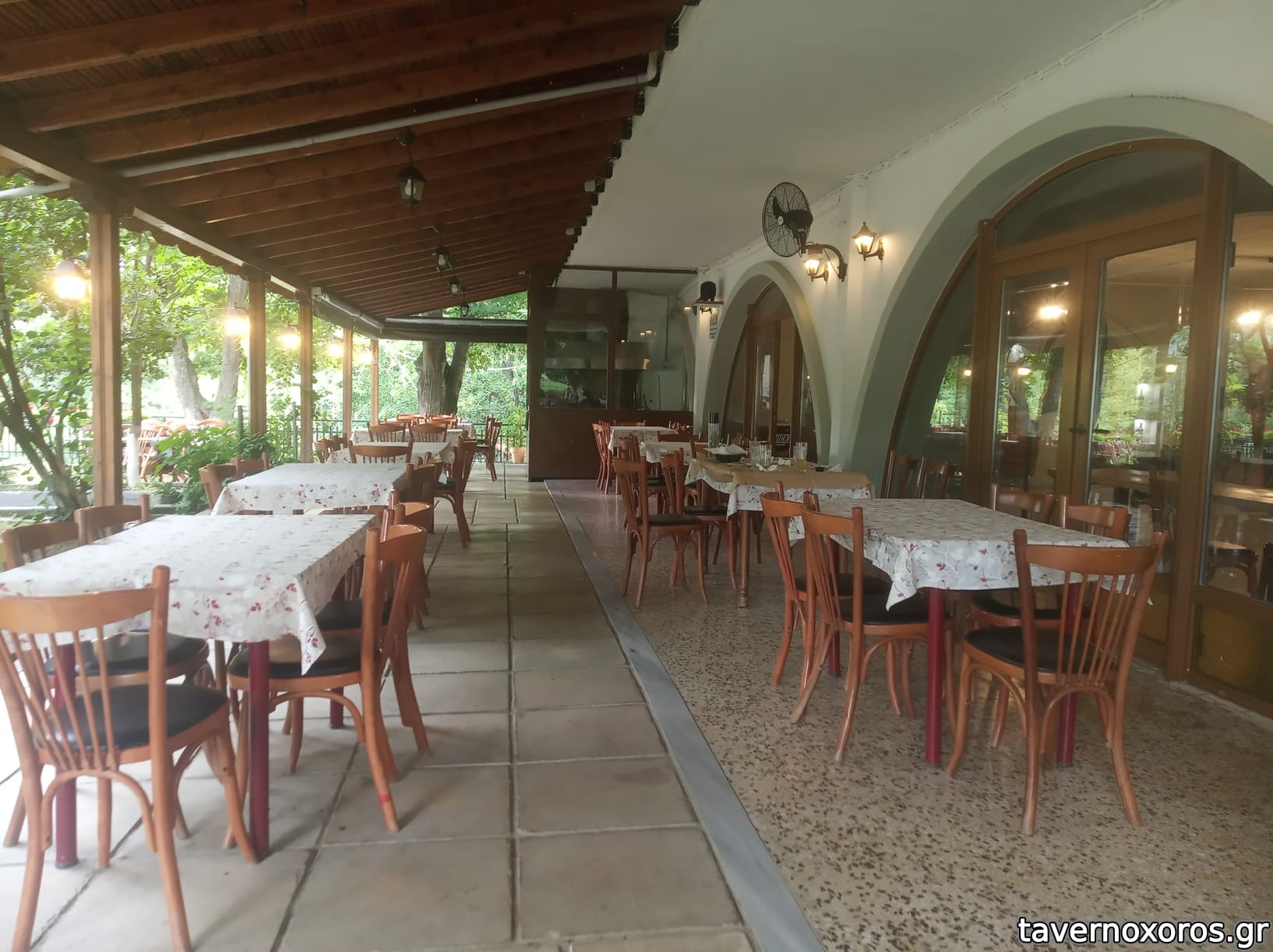 Ο χώρος είναι προνομιακός, πάνω σε έναν λόφο έξω από το χωριό, μέσα σε ωραία φύση με δέντρα. Όταν πήγαμε ήταν πολύ ήσυχα (Σάββατο γαρ), και σε λίγο ήμασταν η μόνη παρέα.