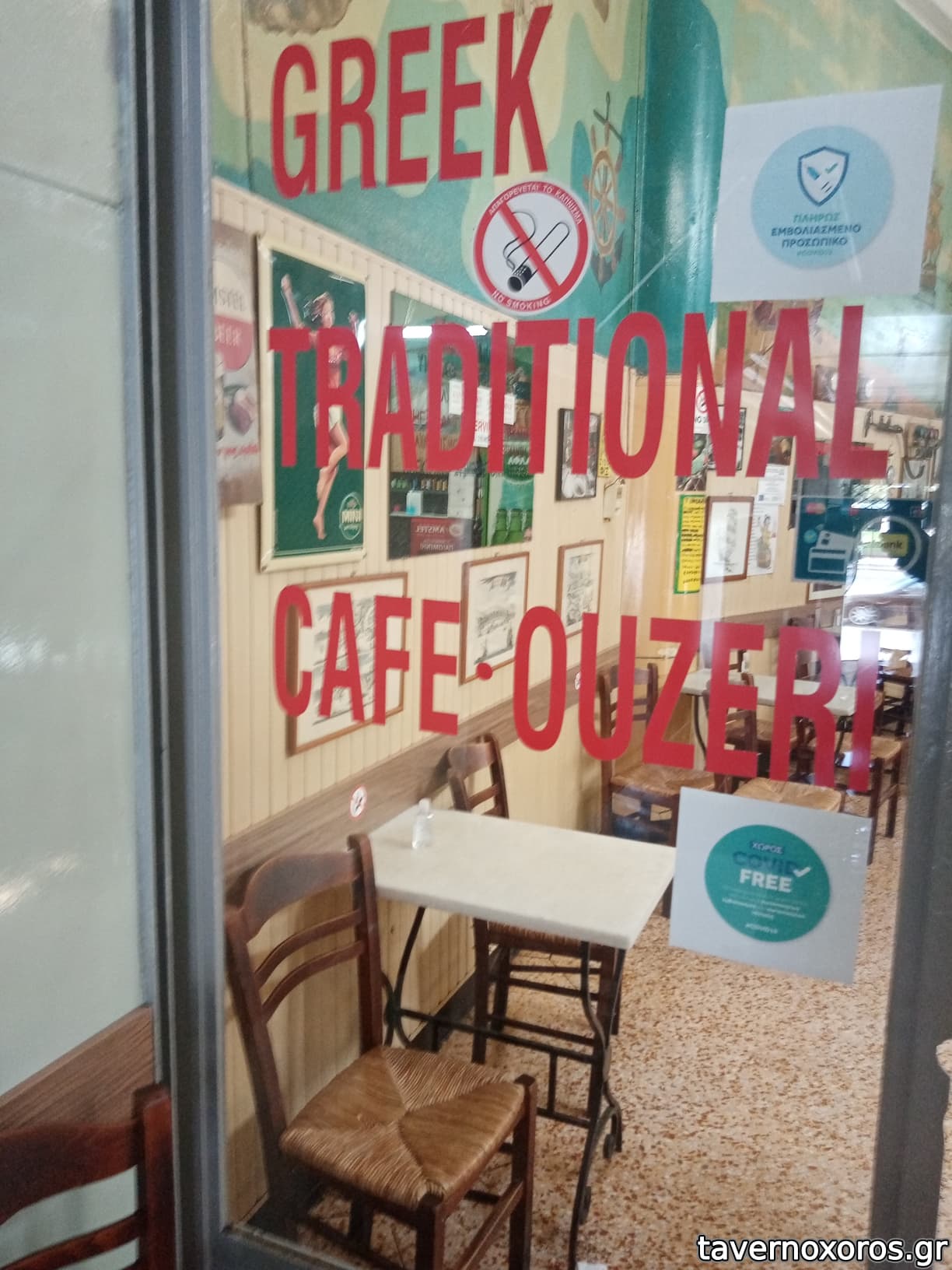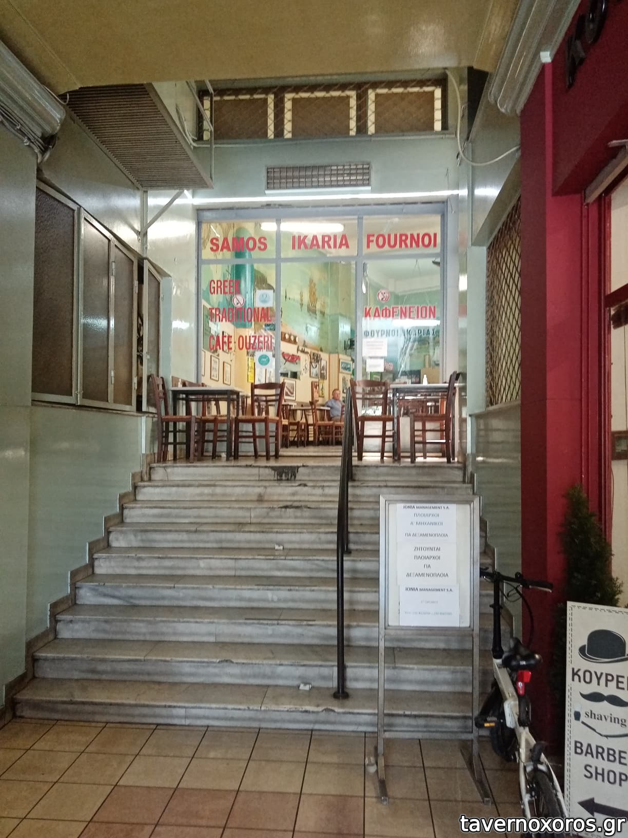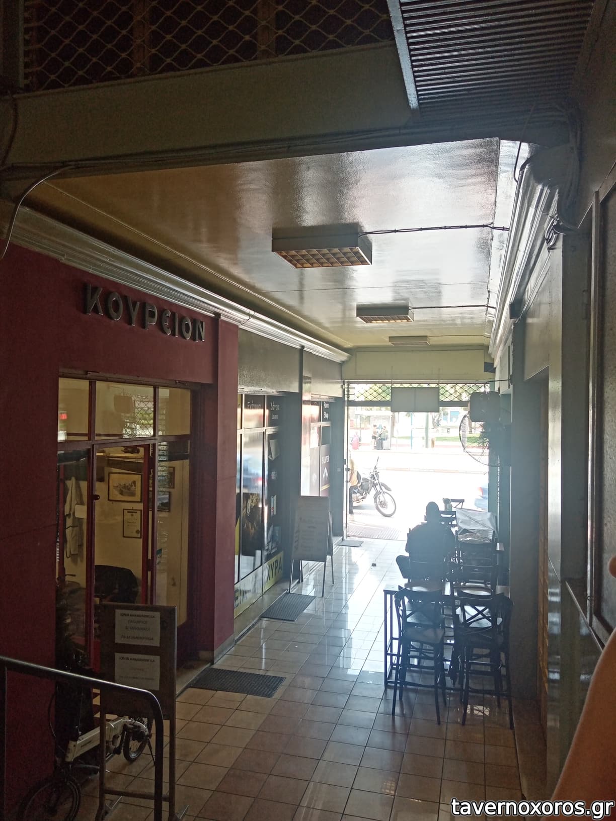 Η όψη του καφενείου από την είσοδο της στοάς (Σεπτέμβριος 2021)