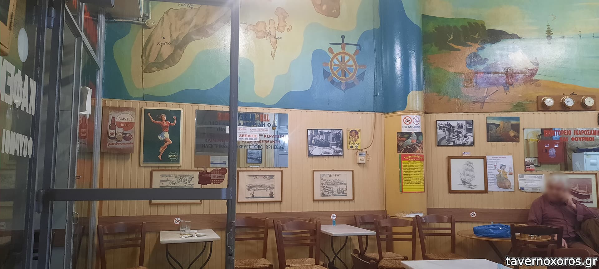 Εκεί ο χρόνος μοιάζει να έχει σταματήσει στη δεκαετία του 50. Ζωγραφισμένοι τοίχοι, ξύλινα καραβάκια, μαρμάρινα τραπεζάκια, ξύλινες-ψάθινες καρέκλες, μωσαϊκό δάπεδο. Αυτό μου αρέσει στα παραδοσιακά καφενεία: «Η Αισθητική του Ατελούς»!