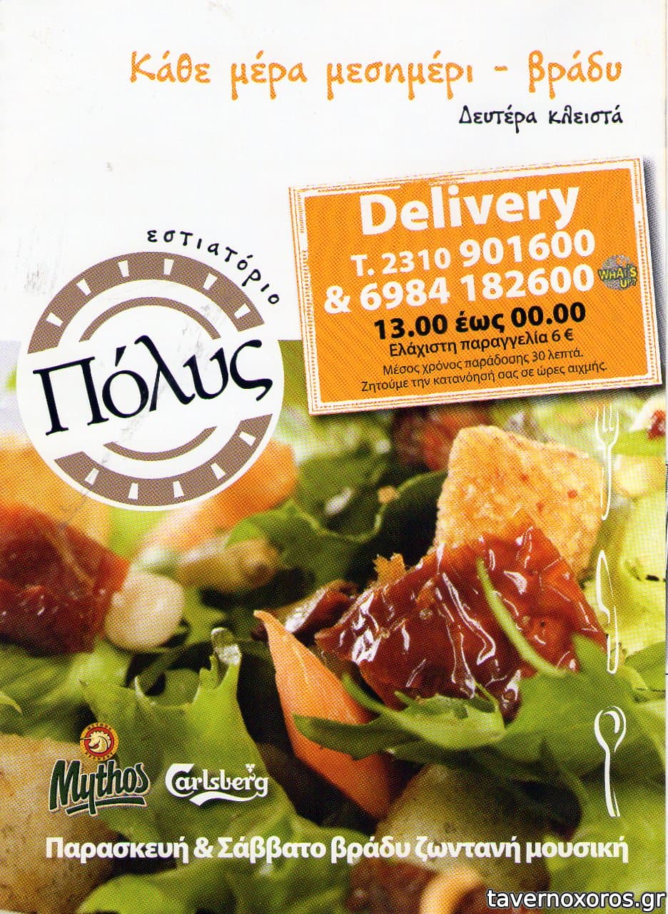 Πολύ καλός και στην τούμπα ο Πόλυς.Τα ίδια καλά φαγητά όπως στη σουρωτή αλλά άλλο μαγαζί.Πιό γραφική ταβέρνα ,πιο φθηνό στύλ αλλά ποιότητα ίδια.Με 9 ευρώ τρως όσο θες το άτομο.πολύ έξυπνο για τέτοιες εποχές.Δεν ξέρω πως βγαίνει ,αλλά αν πανε πολλοί φαγανοί τον βάζουν μέσα άνετα.Α!!! και μπύρα μυθος 1+1 δώρο.Μάλλον βγάζει από τους λεπτούς και το ποτό.Μου αρέσσει πάω συχνά.