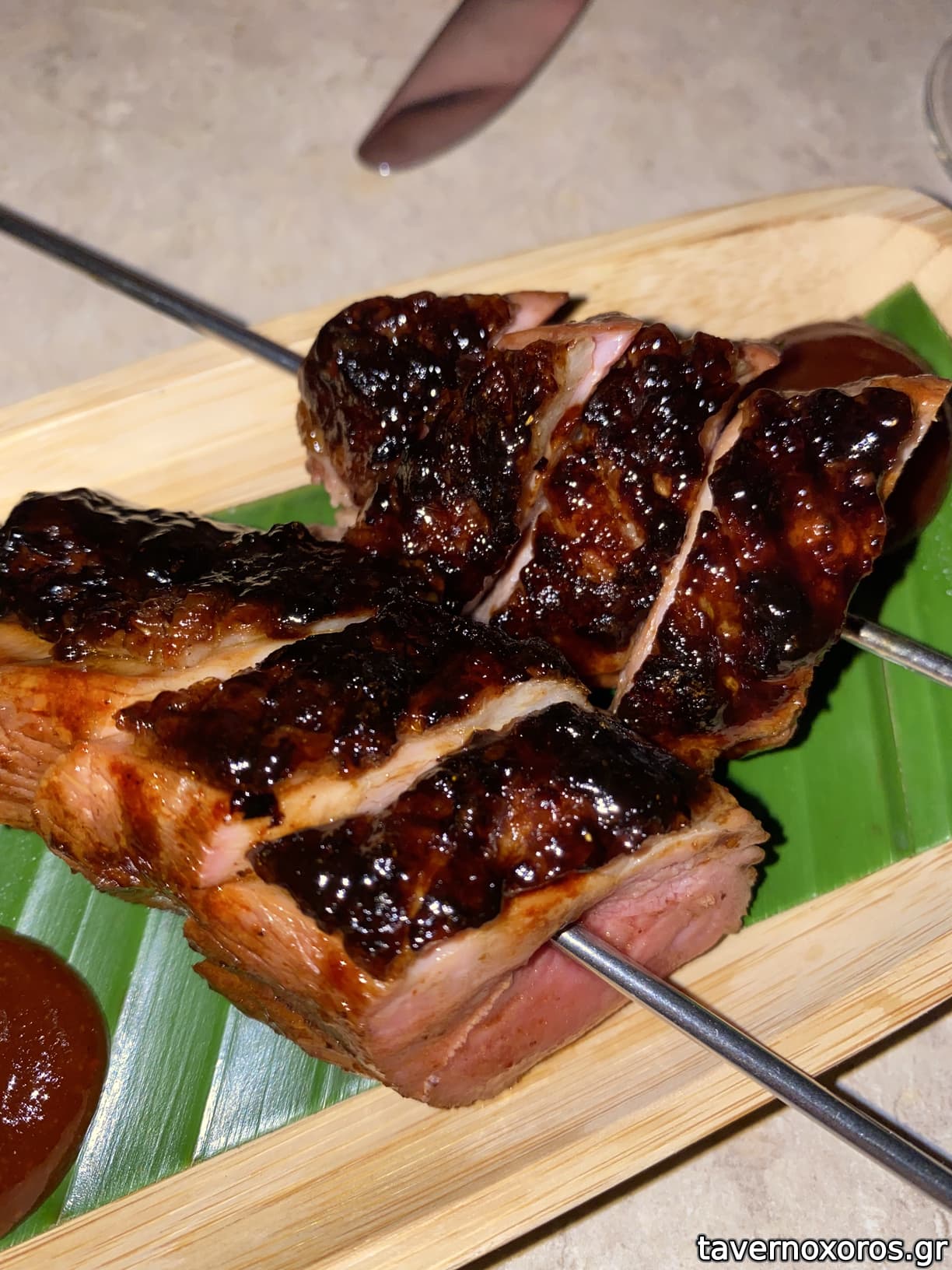 Είναι μέσα στο ξενοδοχείο, λίγο χαμηλοτάβανο και με την ψησταριά η ατμόσφαιρα μπορεί να γίνει αποπνικτική.