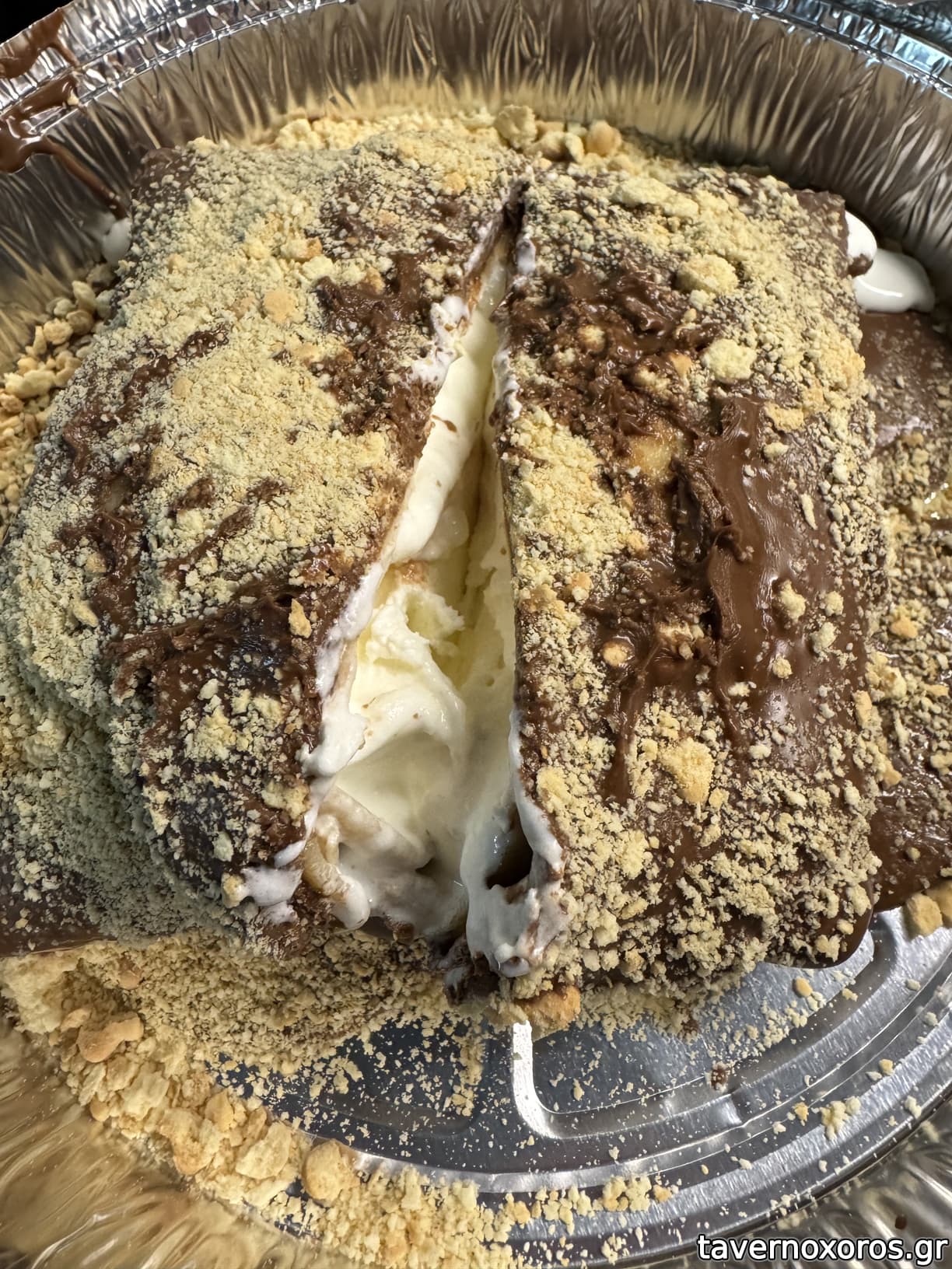 Κρέπα σοκολάτα μπισκότο με γέμιση παγωτό βανίλια τομή (πολύ καλό)
