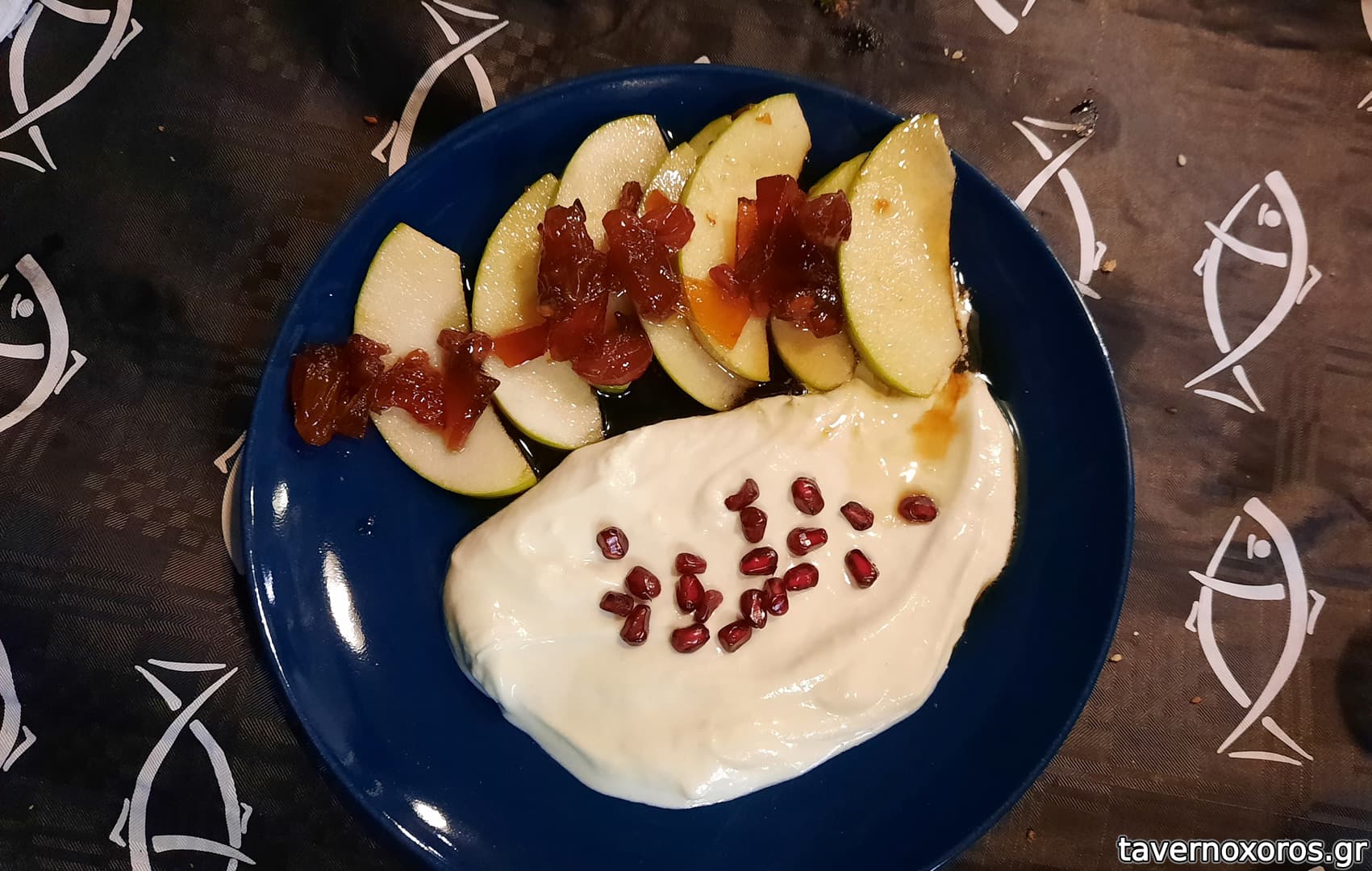 Κερασμένο γλυκό. Κρέμα λεμονιού με μήλο και γλυκό του κουταλιού σταφύλι (τζετ)