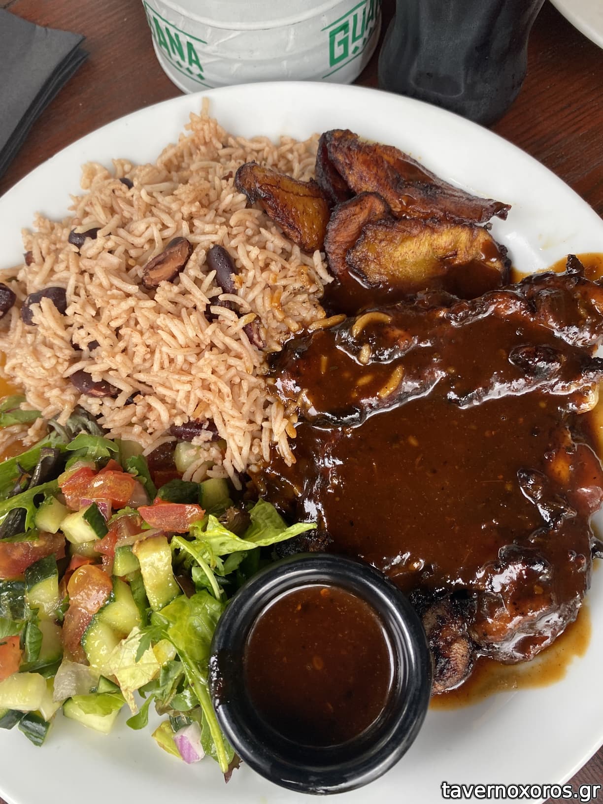 Jerk Chicken with plantain, rice (καλό)