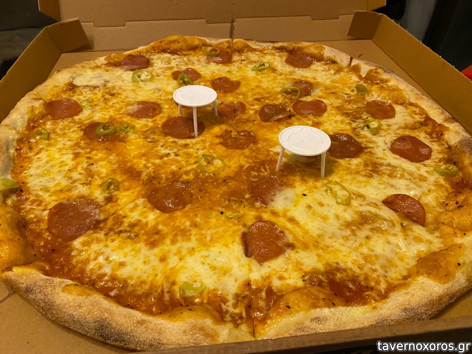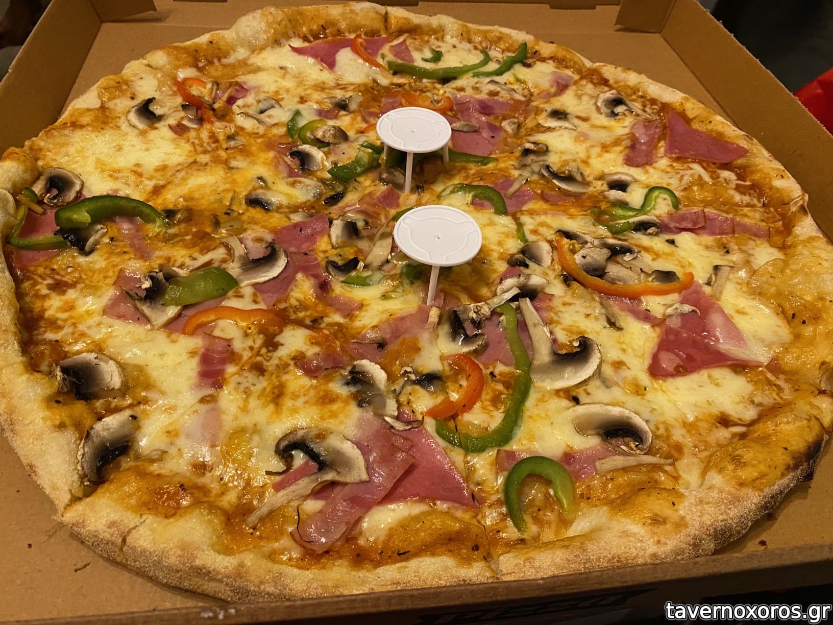 Μόνο η μία πίτσα από τις 3 το χάλασε λίγο στη ζύμη η οποία παραήταν λεπτή και παραψήθηκε.