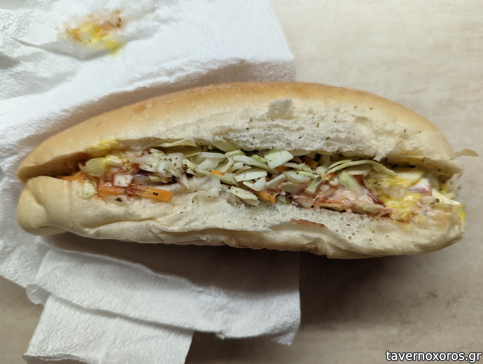 Η μαγιονέζα μου φάνηκε λίγο χαμηλής ποιότητας και έβαλα μόνο στο ένα. Το λουκάνικο λέει δικιά τους συνταγή; κάτι τέτοιο καλή τιμή γενικά θα ήθελα παραπάνω ποικιλία στα συνοδευτικά και ίσως στα ψωμάκια και τα λουκάνικα.