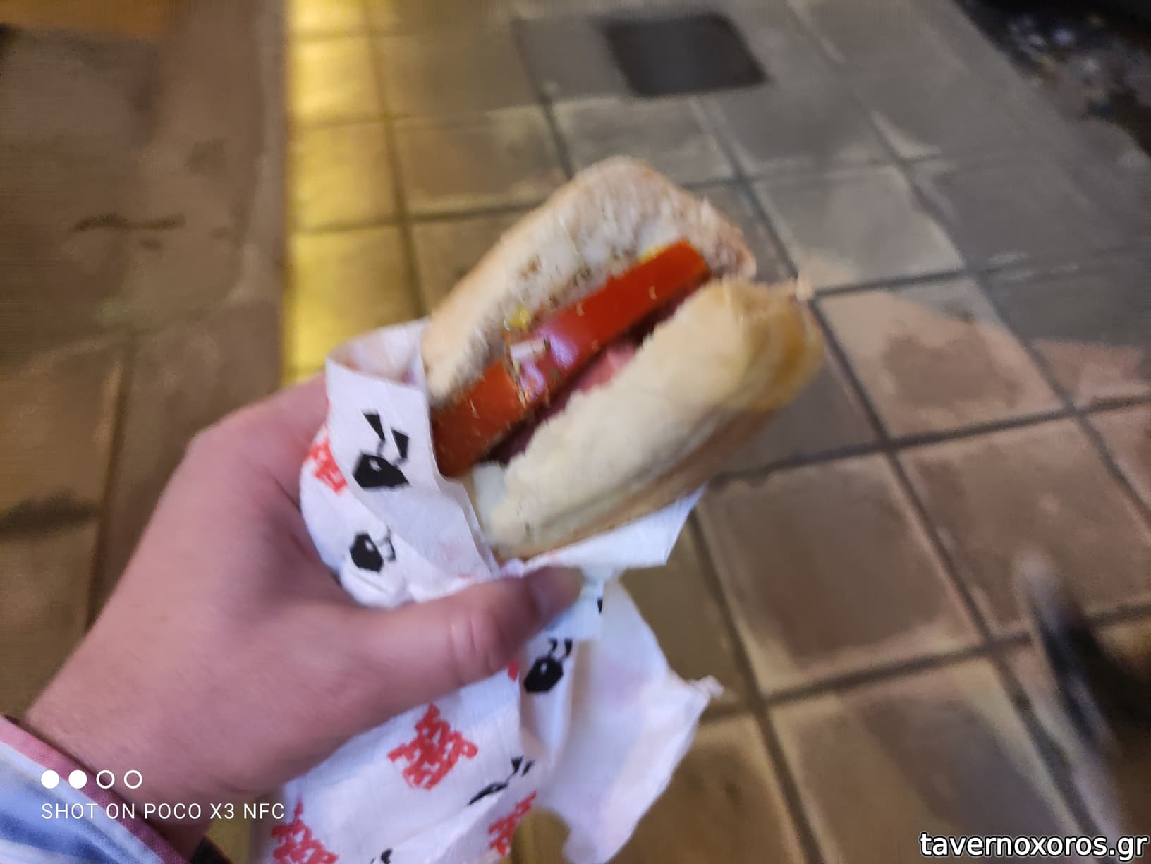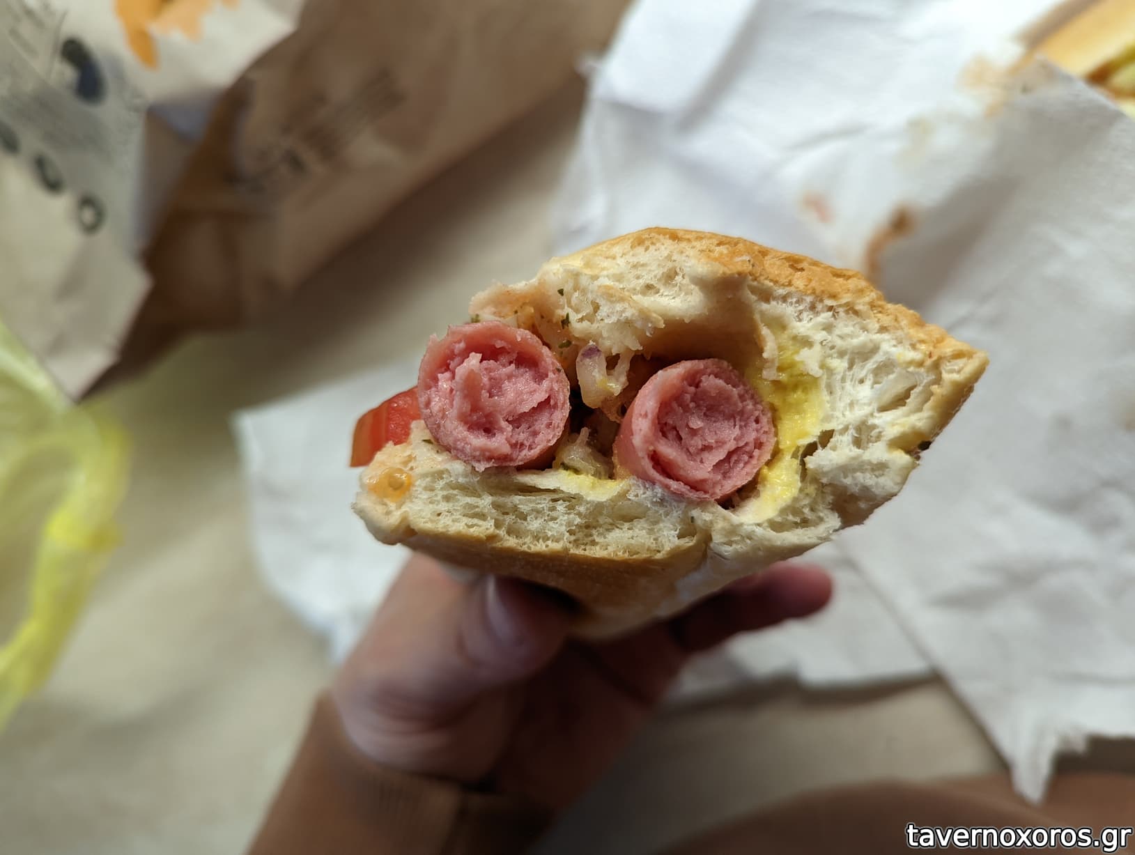 Το ψωμάκι του αρκετά μαλακό αλλά όχι το κλασσικό βιομηχανικό αφρός και τα λουκάνικα που δουλεύει είναι μοσχαρίσια.