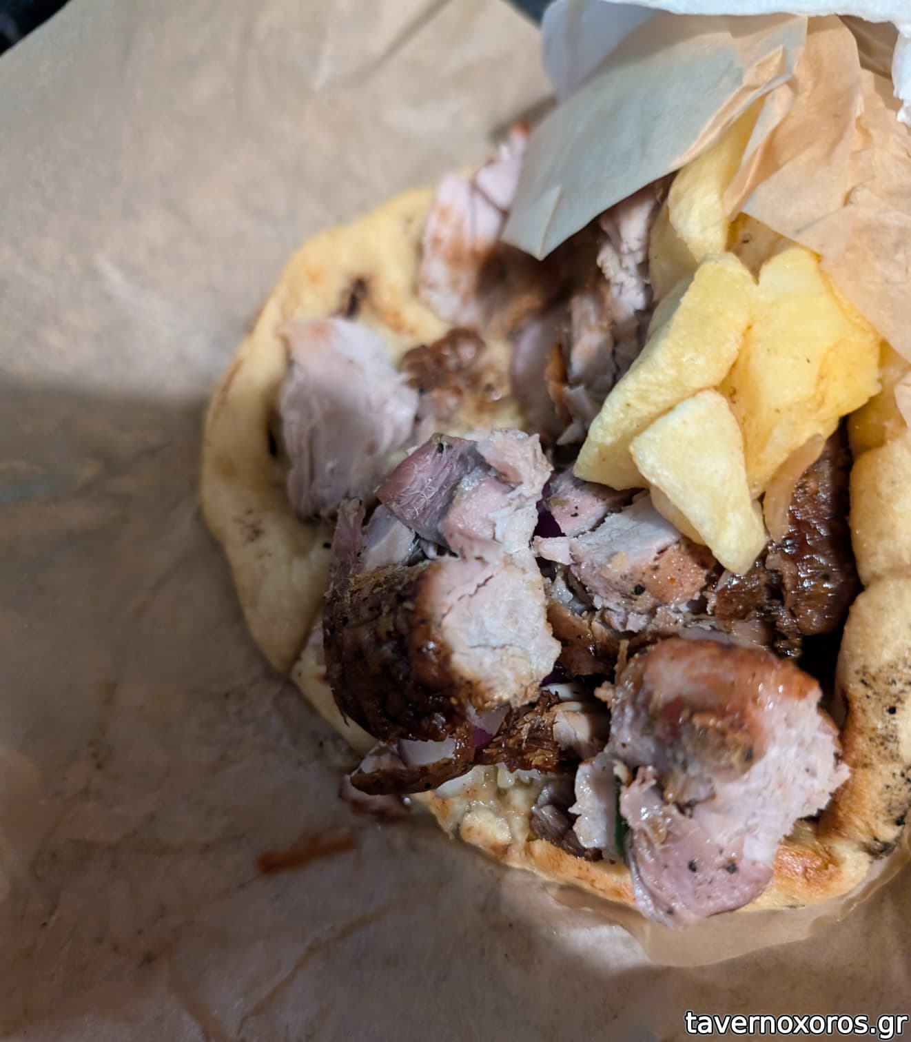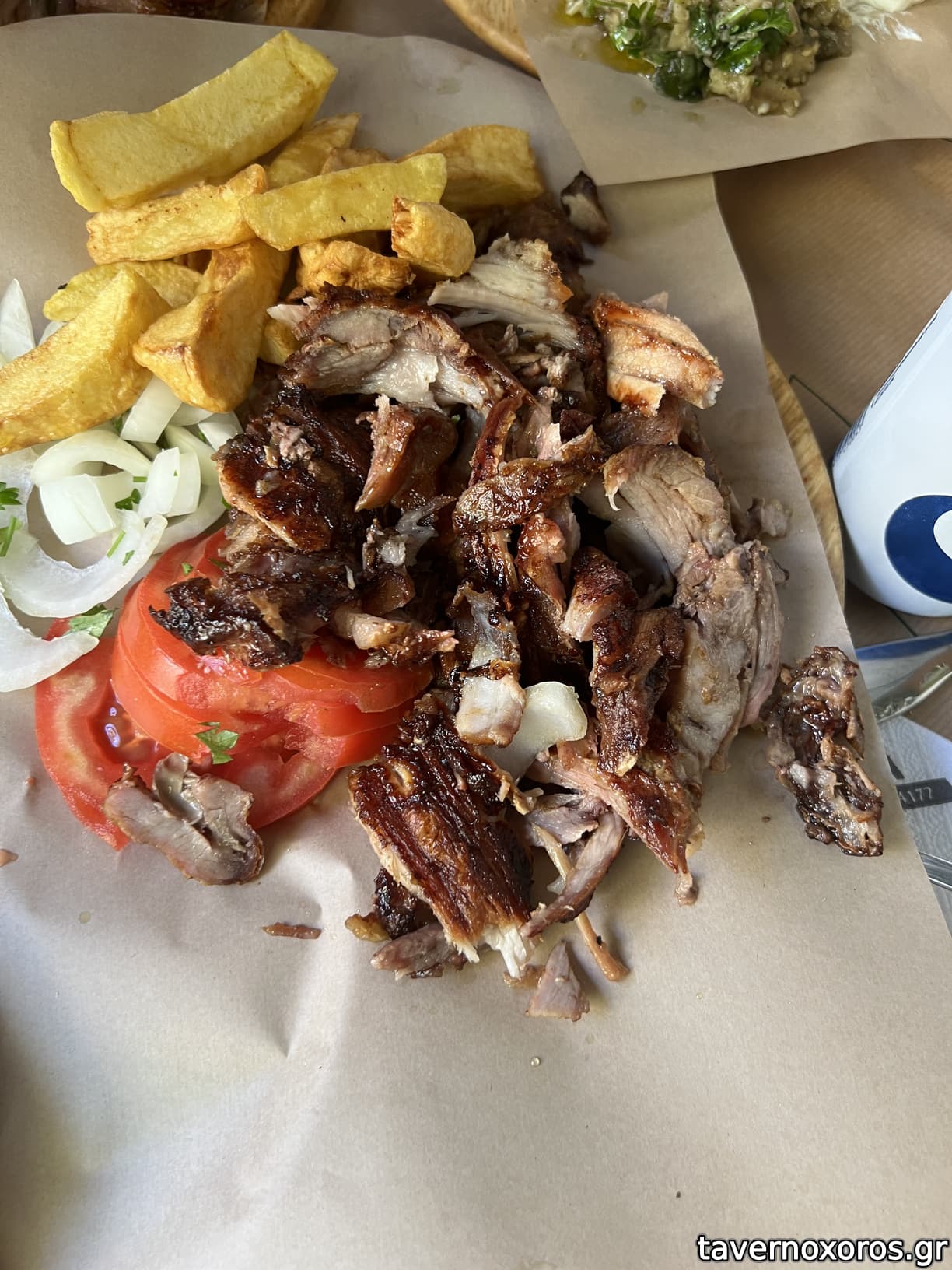 - Ο γύρος χοιρινός όπως τον θυμάμαι, χοντροκομμένος (σούβλα, γαρ...) και καρυκευμένος σωστά χωρίς να είναι λύσσα.