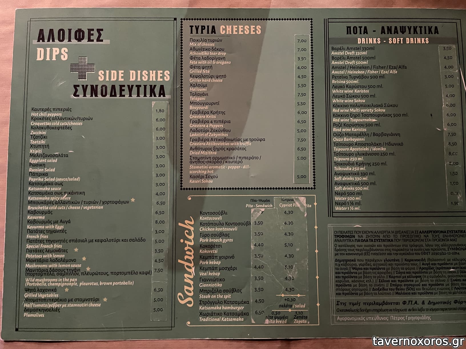 Χόρτα (καλά), αλοιφές (πάπρικα οκ, τυροκαυτερή άνω του μέσου όρου), πίτες (μέτριες)