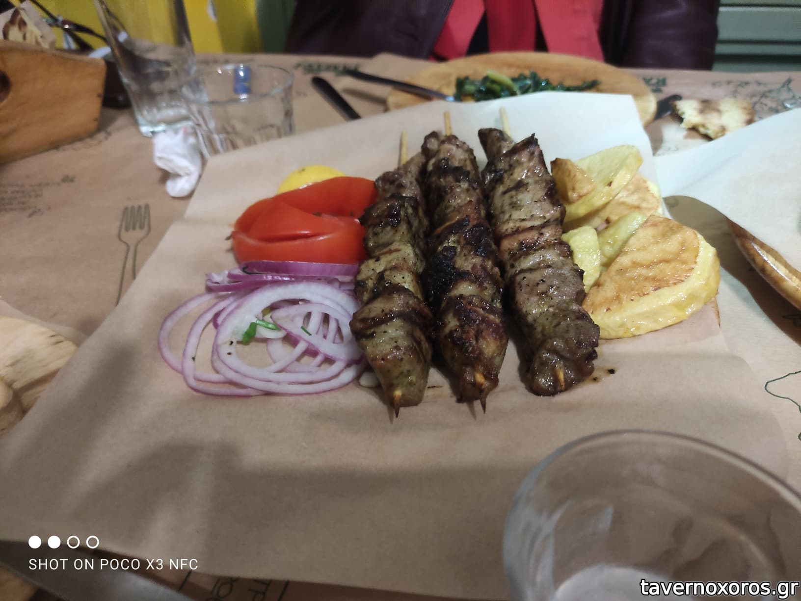 Κοντοσούβλι χοιρινό, νόστιμο αλλά λίγο σκληρό.
