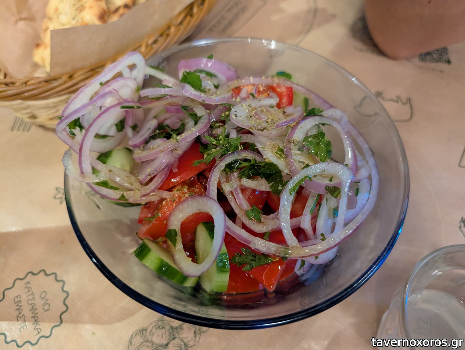 Αγγουροντομάτα οκ και λευκό κρασί χύμα μια χαρά.