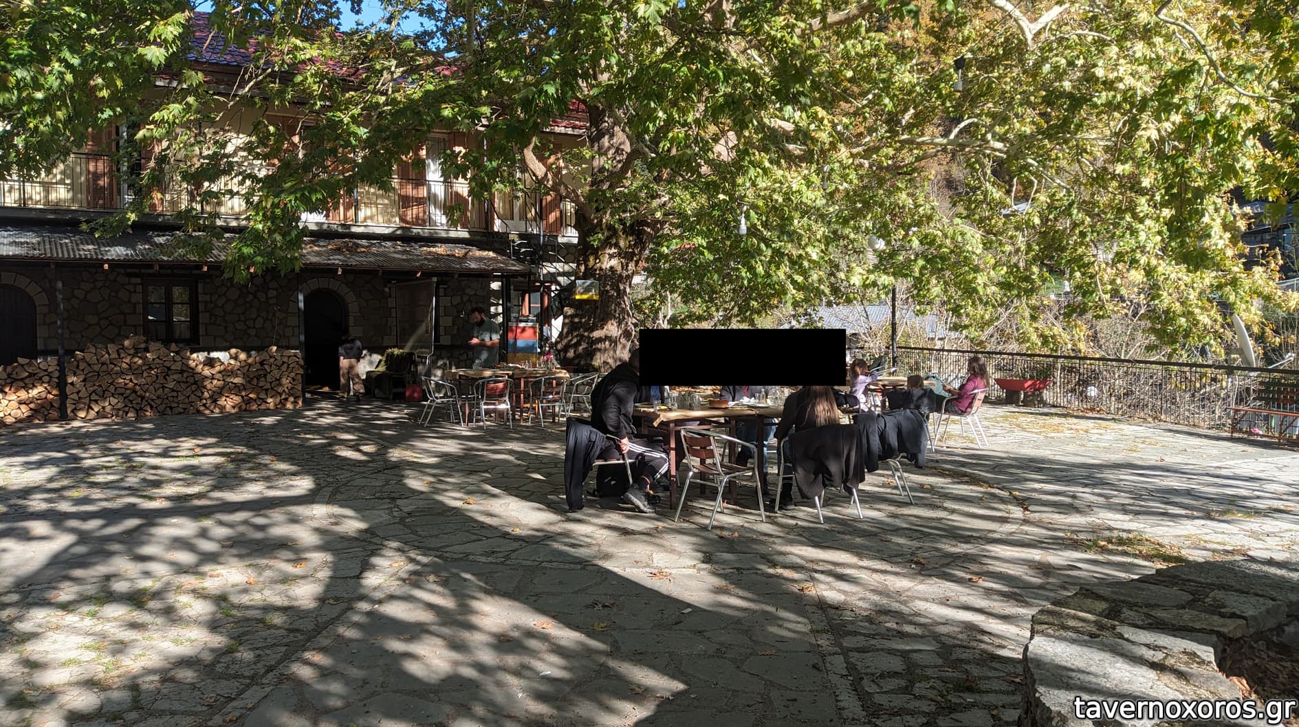 Υπερευχάριστο εξωτερικό τραπεζάκι στην πλατεία με πολύ ωραία θέα τα βουνά, που συνδυάζει σκιά πλατάνου, ήλιο και απλωσιά. Εσωτερικά είναι επίσης πολύ ωραίο. Το κατάστημα και τον ξενώνα το τρέχει ένα νεαρό ζευγάρι και είναι ανοιχτό σχεδόν όλο το χρόνο εκτός από 1-2 μήνες μετά τον Ιανουάριο. Πολύ ωραίοι και όχι τόσο κοινοί μεζέδες με το τσίπουρο. Βγάζει κάποια λουκάνικα, φασόλια, τυριά, σαλάτες και κάποιες δικές τους παρασκευές, όπως μελιτζανάκι τουρσί, άγρια μανιτάρια τουρσί κλπ. Προβατίνα κοκκινιστή καταπληκτική. Ιδανική κατάσταση για τσίπουρα και καλό φαί, πέρασα καταπληκτικά και ανυπομονώ να ξαναπάω