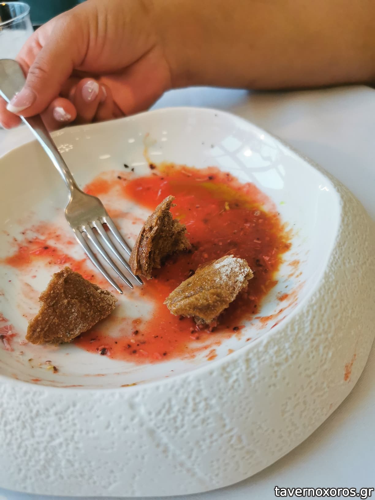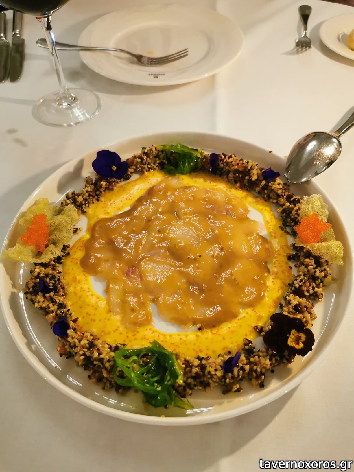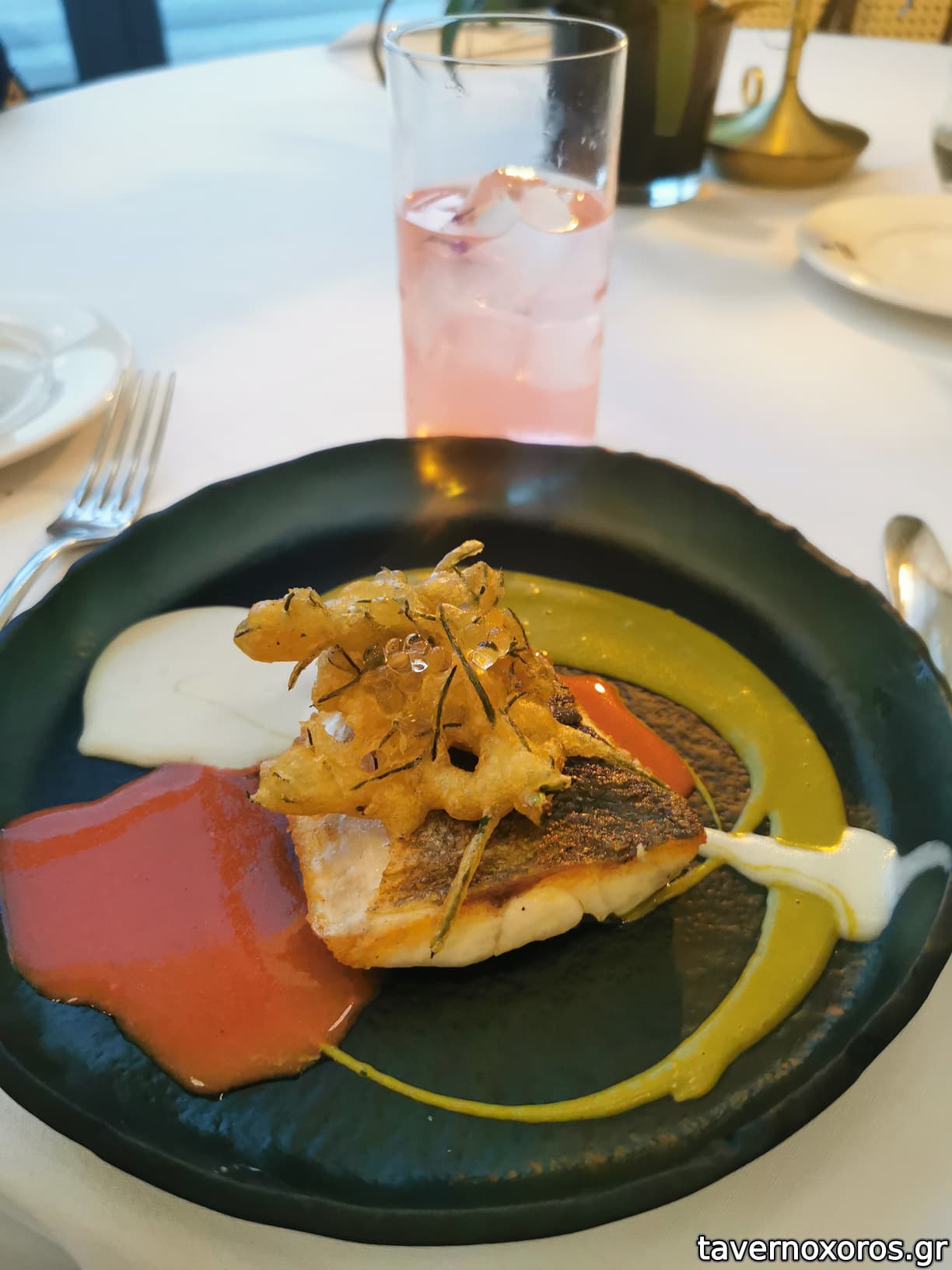 Τόνος Σποράδων: καλό πιάτο, αλλά υπερβολικό το αλάτι και το ψήσιμο, λαγόχορτο σε 2 υφές εξαιρετική η εκτέλεση.