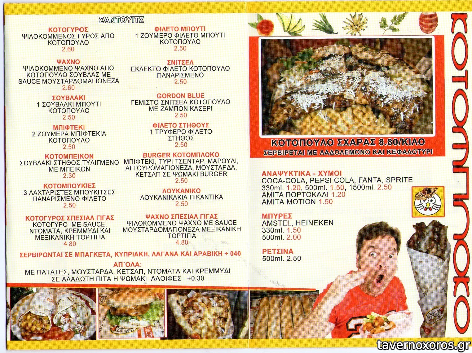 Ο γύρος του είναι ο μόνος γύρος κοτόπουλο που τρώγεται στο κέντρο της Θεσσαλονίκης,και είναι και πολύ καλός μάλιστα!τα υπόλοιπα είναι αξιοπρεπή προς καλά, τρώγονται ευχάριστα αλλά δεν κάνουν τη διαφορά..
