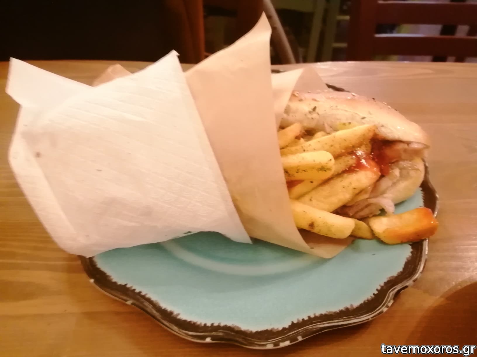 Καθίσαμε ως λύση έκτακτης ανάγκης. Το περιβάλλον εσωτερικά παραπέμπει περισσότερο σε γυράδικο (έντονος ενοχλητικός φωτισμός) παρά ταβέρνα. Το φαγητό σε γενικές γραμμές ήταν απλώς αποδεκτό, το σέρβις από μία κοπέλα φιλικό. Εκ των υστέρων έμπιστος ντόπιος μας πρόγκηξε για την άφρονα επιλογή μας.