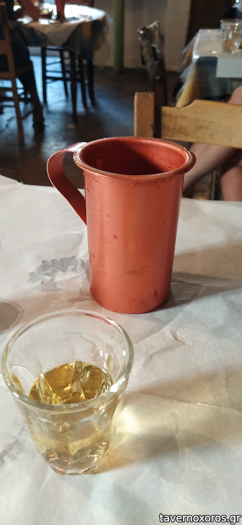Η ταβέρνα υπάρχει πάνω από 100 χρόνια και πέρασε το 1991 από τα χέρια του τελευταίου ιδιοκτήτη στον πρώτο σερβιτόρο κ Μήτσο ο οποίος πάντα με λευκή ρόμπα και περιποιημένο μουστάκι δεσπόζει στο μαγαζί και παίρνει τις παραγγελίες. Από φαγητά έχει πάντα μια μικρή κάρτα πατάτες γιαχνί, πικάντικη φάβα, ενίοτε μαυρομάτικα φασόλια, χόρτα, σαλάτα, γόπα ή σαρδέλα ψητή και πολύ νόστιμη ρεβιθόσουπα.