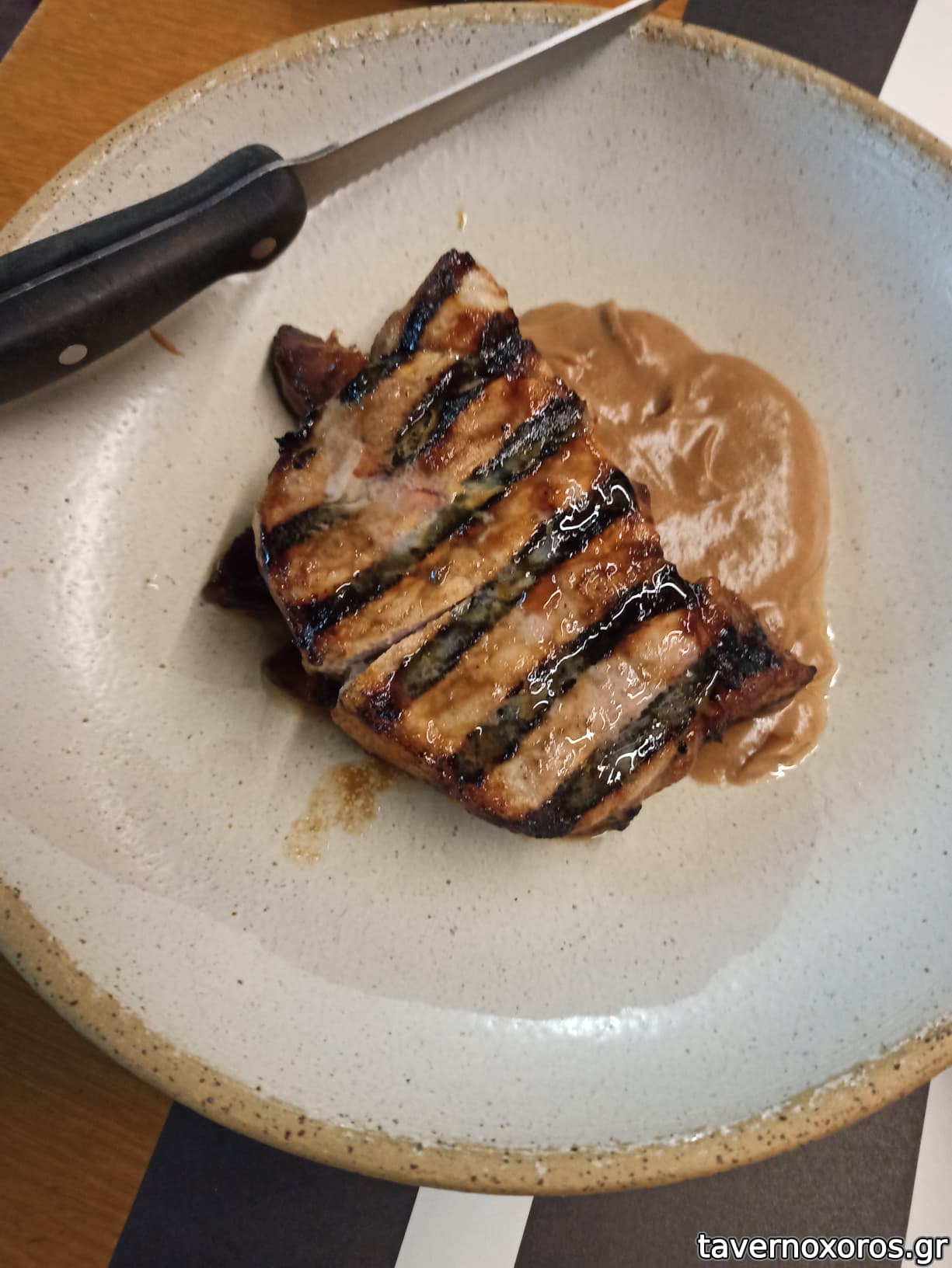 Μαύρος χοίρος με κρέμα κυδώνι και ψητό κυδώνι (πολύ καλό)