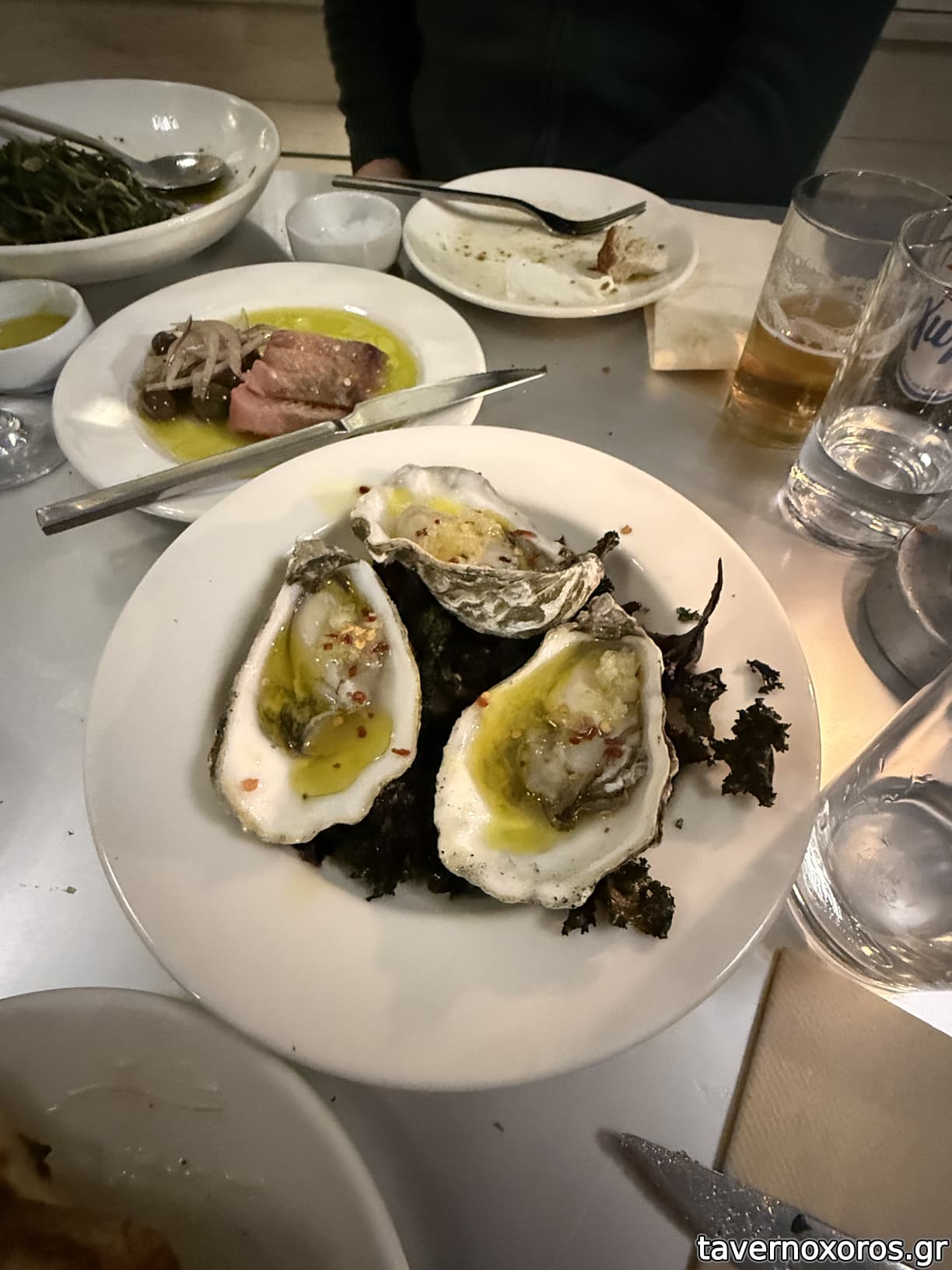 Δικά τους ψωμιά, ταραμάς ο καλύτερος που έχω φάει ποτέ, φαγκρί με μανιτάρια σιιτάκε σε ζωμό κότας φοβερό, φρικασέ μπακαλιάρος έπος. Ότι έφαγα ήταν άριστο.