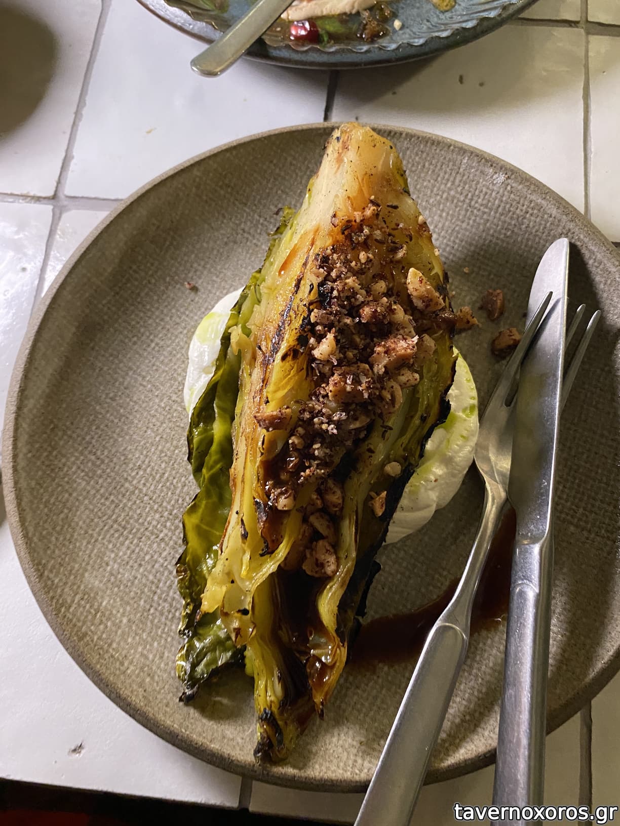 Η μπριζόλα φαίνεται στο βάθος (από διπλανό τραπέζι - φαινόταν δυνατή)