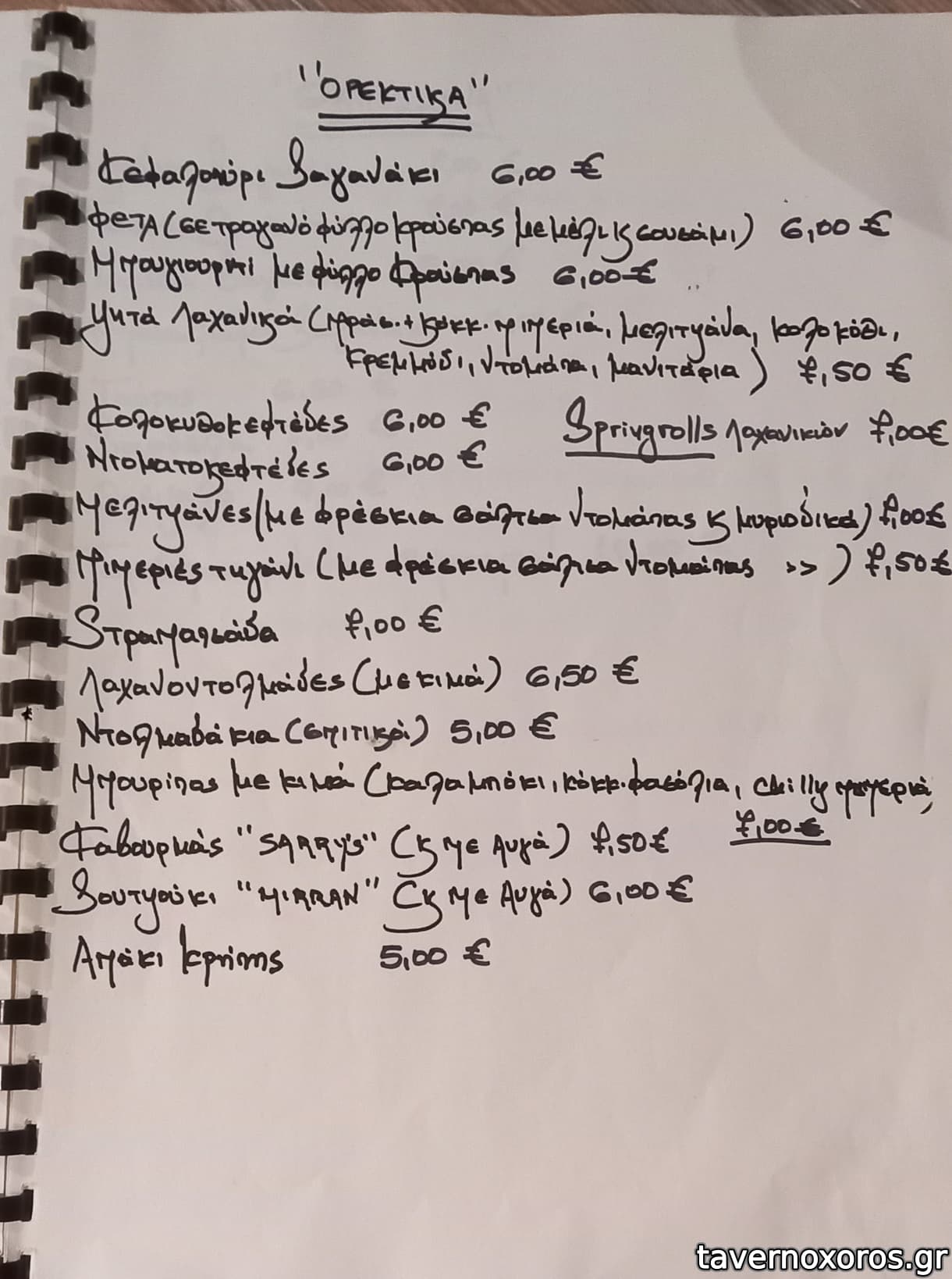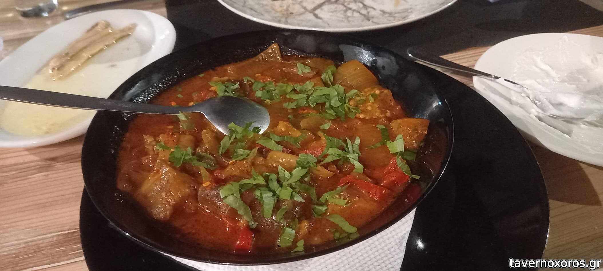 Δοκιμάστηκαν: λευκός ταραμάς, ψητά λαχανικά, γαύρος μαρινάτος, μελιτζάνες με σάλτσα ντομάτας και μυρωδικά, κεφαλοτύρι σαγανάκι, σαρδέλα ψητή και γαύρος σαγανάκι. Αν εξαιρέσει κανείς τον γαύρο σαγανάκι που ήταν καλός αν και φτωχός σε ποσότητα και την σαρδέλα που ήταν πολύ φρέσκια και όχι παραψημένη, τα υπόλοιπα ήταν δυστυχώς αδιάφορα.