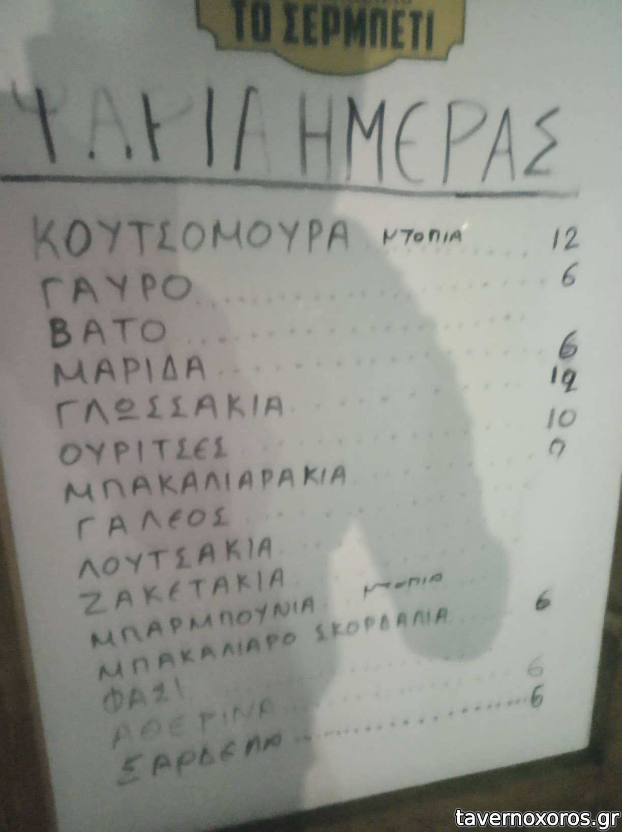 | Λέξεις κλειδιά | #πατσάς, #tv, #γαύρος, #πεσκανδρίτσες, #γαλέος, #αθερίνα, #σαρδέλα, #μπακαλιάρος σκορδαλιά, #ντοματοκεφτέδες, #μυδοπίλαφο, #χταπόδι, #θράψαλα, #σουπιές, #μύδια, #γαρίδες, #γάμπαρη, #καλτσούνια, #κολοκυθοκεφτέδες, #φασόλια πιαζ, #μελιτζανοκεφτέδες, #κολοκυθάκια, #φασόλια γίγαντες, #ντολμαδάκια, #πιπεριές, #ομελέτα, #λουκάνικο, #τηγανιά, #κότσι, #μπιφτεκάκια, #σουτζουκάκια, #πανσέτα, #τζιγεροσαρμάς, #χοιρινή, #σνίτσελ, #κεφτεδάκια, #γλώσσα μοσχαρίσια, #κοτόπουλο, #σουτζουκάκια σμυρνέικα, #ανηθοσαλάτα |
