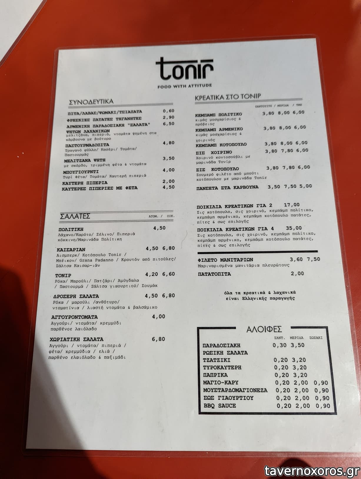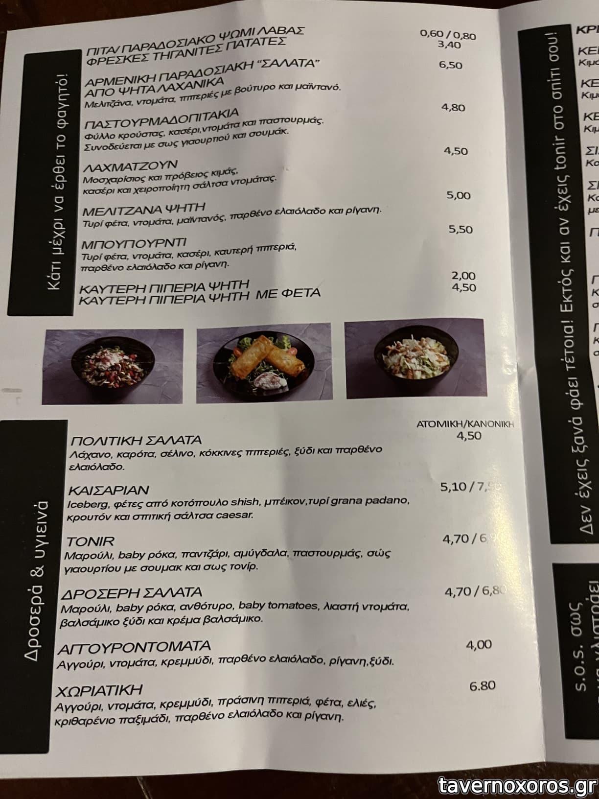 Δοκιμάστηκαν Αρμένικο κεμπάπ (πολυ καλό), Σις κοτόπουλο(πολυ καλό), παραδοσιακή ρώσικη σαλάτα(εξαιρετική) και σαλάτα Καισαριάν(καλή).