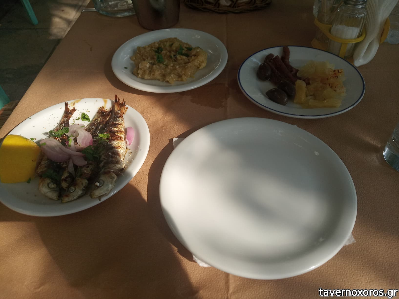 Τσίπουρο μεζέ: σαρδέλες ψητές, μελιτζανοσαλατα, ελιές και παστό και λάχανο τουρσί