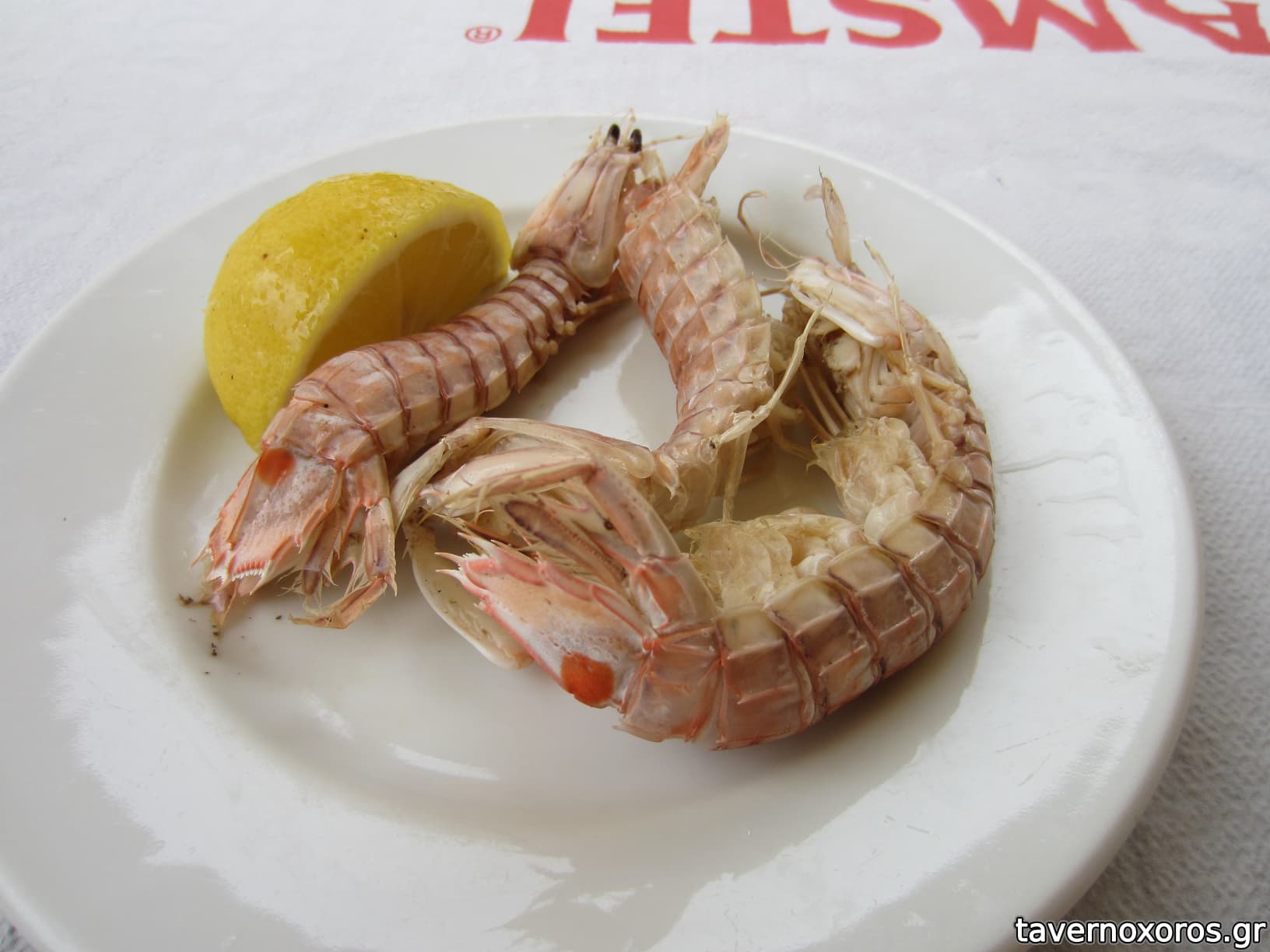 Γαρίδες σαγανάκι (καλές, αλλά το κίτρινο τυρί που έριξαν στο σαγανάκι ήταν περιττό)
