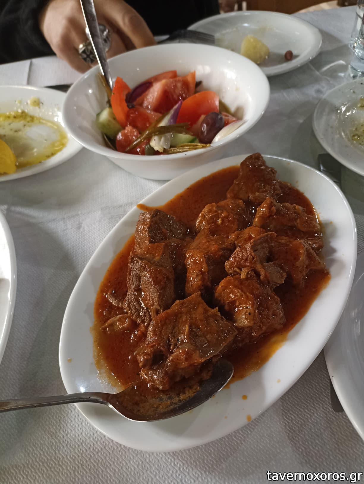 Το επισκεφθήκαμε Φλεβάρη '25. Όλα ξεκινούν με την ερώτηση "κρέας ή ψάρι" και ο αριθμός των ατόμων συνοπολογίζεται στην ποσότητα. Δεν υπάρχει κατάλογος, ό,τι μαγειρεύτηκε/ετοιμάστηκε εκείνη τη μέρα. Διαλέξαμε κρέας. Ήρθαν 3 ορεκτικτά (αγγουροντομάτα, φέτα λαδορίγανη, πατάτα βραστή) και 4 κρεατικά (τηγανιά χοιρινή, κοτόπουλο με πιπεριές, μοσχάρι κοκκινιστό, κεφτεδάκια). Σε σχέση με την επιλογή "ψάρι", μόνο η αγγουροντομάτα παρέμενε κοινή.