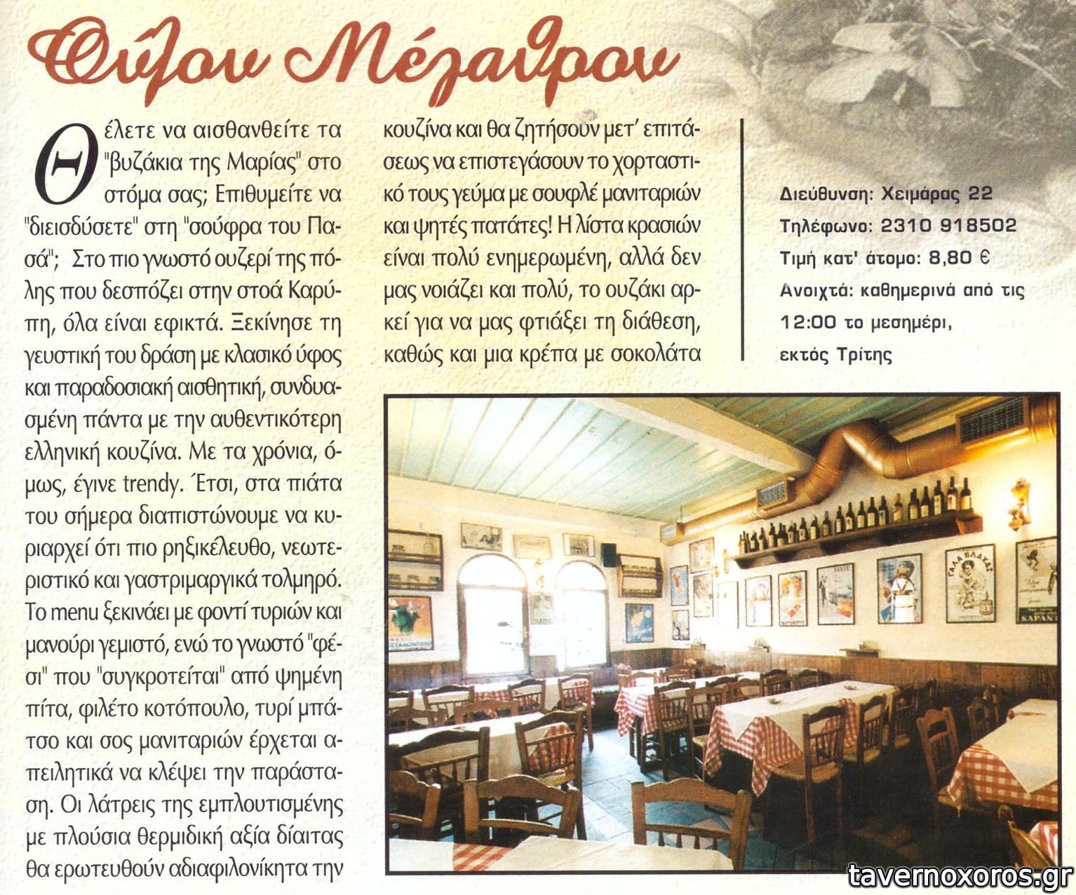Παρόλα αυτά έχει μεγάλη επιτυχία. Δεν είναι η χειρότερη ταβέρνα της Θεσσαλονίκης σε καμία περίπτωση, αλλά ούτε καταλαβαίνω γιατί έχει τόσο μεγάλη επιτυχία.