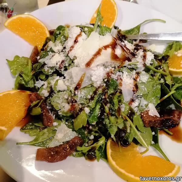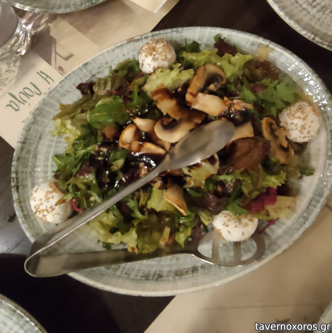 Σαλάτα βαλσάμικη: διάφορες πρασινάδες, μανιτάρια, βαλσάμικο..